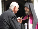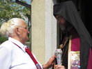 A Szent Liturgián jelen volt Fülöp püspök mellett sok más, a környékről érkezett görögkatolikus pap is. A Liturgia végén a helyi parókus, a Szlovákiában szolgáló magyar atyák és a helyi énekkar vezetője köszöntötte az új püspököt. A dámóci közösség egy új püspöki ruhát adott ajándékba Atanáz atyának hálájuk kifejezéseként, és a kórus egy kis „koncerttel” is emlékezetessé tette az ünnepet. A Szent Liturgia után süteménnyel és üdítőkkel kínálták a megjelenteket a helyiek.