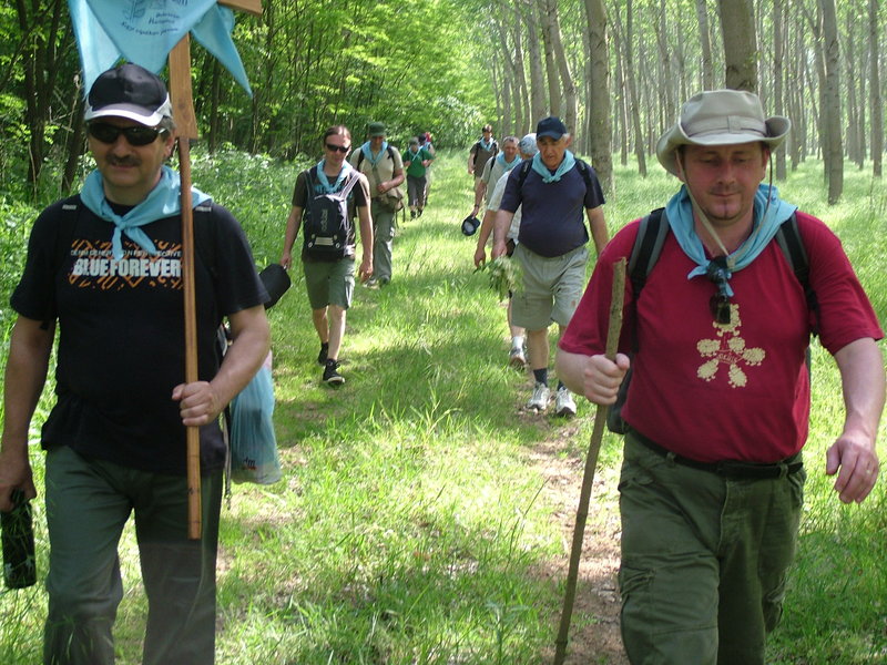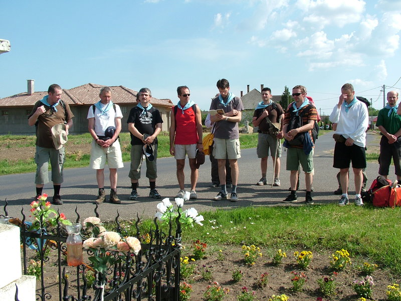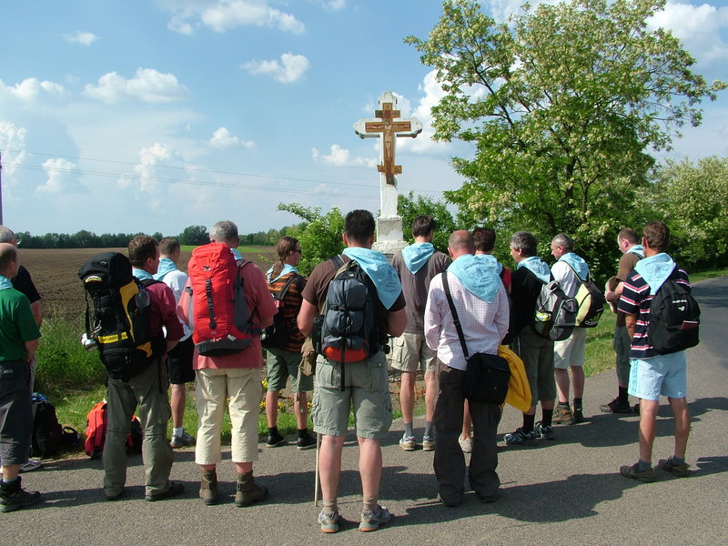 Mi csendesen álldogálva, téblábolva, egymással ismerkedve, szót váltva, beszélgetve várakoztunk, vártuk, hogy mindenki megérkezzen, vártuk az indulás pillanatát. Mindenki teljes menetfelszerelésben, praktikus eszközökkel, élelemmel, ruházattal, hálózsákkal a hátán felszerelve az utolsó simításokat végezve a málhán, minél kényelmesebb legyen a távolság gyalogos legyőzése. Sokfelől érkeztünk ide különféle korú, jellemű emberek, férfiak mind, a vállalásunk töltötte be gondolatainkat, mely összehozott minket egy időre, egy cél: „Apák zarándoklata családjaikért”.