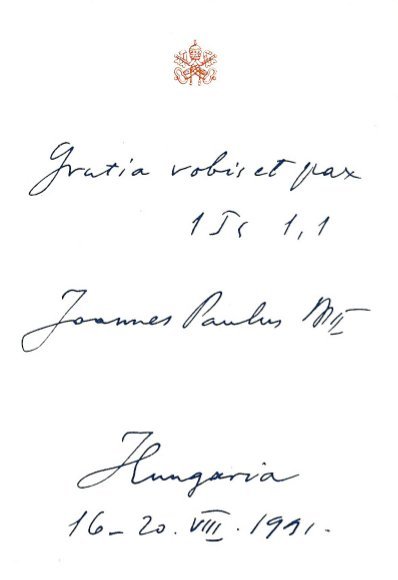 „Mária nevében köszöntök mindenkit, e városka lakóit, a magyarországi zarándokokat és a szomszédos országokból érkezetteket. … különös szeretettel köszöntöm a magyar zarándokokat, akik a szomszédos országokból és vidékekről jöttek, hogy a magyar testvérekkel együtt imádkozzanak Szent Péter utódjával. Ma mindnyájatoknak az a feladata, hogy az elnyert szabadságot a szeretet törvényének megfelelően használjátok fel a keresztény élet megvalósítására, testvéri kapcsolatokban az összes keresztényekkel és az összes nemzetekkel. Maradjatok hűek lelki örökségetekhez! Őrizzétek meg a hitet, Isten áldjon meg benneteket! … Kérem a Szent Szüzet, hogy együttlétünk ösztönözzön és serkentsen titeket és honfitársaitokat a kölcsönös megértésre és a gyümölcsöző együttműködésre; vannak köztetek olyanok, akik más nyelveken beszélnek, és másfajta kultúrában élnek, de ugyan ahhoz a nagy emberi családhoz tartoznak.”