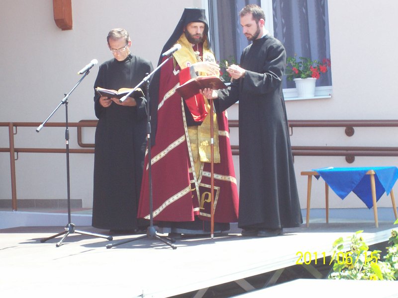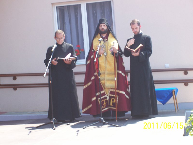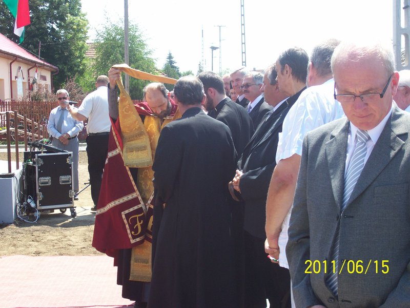 Kocsis Fülöp püspök úr házszentelési szertartást tartott, melynek zárásaként elmondta, hogy nagy örömmel töltötte el Balogh Annamária vezetőnő meghívása. Annak ellenére, hogy az egyháznak nem volt szerepe a pályázati programban, a meghívás kedves gesztusával kifejezték, hogy a Magasságos Isten segítségét kérik a szakszemélyzet munkájához. Püspök úr szentbeszédében emlékeztetett a zsoltáros figyelmeztetésére: „Ha az Úr nem építi a házat, hiába fáradnak az építők.” Isten áldása nélkül hiába van minden jó szándékú törekvés, de ha Isten segítségét kérjük a munkánkra, meghatványozódik az eredmény. A szentelési szertartással püspök úr Isten áldását kérte az ott tartózkodókra, dolgozókra, a kezdeményezésre és nem csak az épületátadás ünnepi napján, hanem a dolgos hétköznapokon is. A prédikáció végén püspök úr elmondta, hogy az idősödő ember, érezve élete végének közeledtét, nem tud Isten nélkül élni. Az átadott épületekben dolgozók az idősek és rászorulók számára nemcsak emberi jó szándékot és humánus segítséget tudnak nyújtani, hanem a kért isteni áldást is.