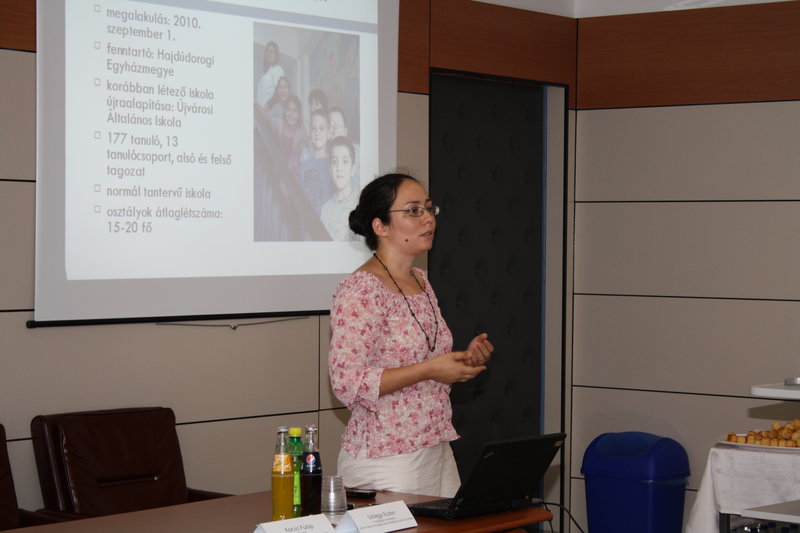 A hátrányos helyzetű roma gyerekek integrált oktatásának kutatási tapasztalatait Németh Szilvia a TÁRKI-TUDOK oktatási szakértője összegezte. Előadást halhattunk a hódmezővásárhelyi és az ácsi integrált oktatási modellről, melyek sikeres kezdeményezések a romák integrálása terén. A Görögkatolikus Egyház részéről Szilágyi Eszter a szolnoki Szent Tamás Görögkatolikus Általános Iskolában folyó cigány pedagógiai program eddigi tapasztalatait ismertette, hiszen ott az iskolába járók döntő többsége hátrányos helyzetű. Juhász Éva a Hajdúdorogi Egyházmegye cigányügyi megbízottja a Görögkatolikus Egyház eddigi cigánypasztorációs tevékenységét foglalta össze, amiből kiderült, hogy az egyház ezen területen végzett szolgálata több évtizedes múltra tekint vissza. Az egyház egyik alapelve – küldetéséből fakadóan – az el- és befogadás, amely elv minden eddig létrehozott intézményükben hangsúlyosan érvényesül.
