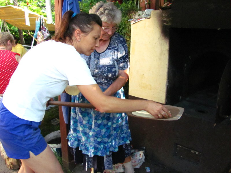A résztvevők az alkotómunka mellett minden esztendőben vendégei lehetnek Maczó Magda néninek is, aki korábban a Hajdúdorogi Székesegyház sekrestyése volt. Magda néni idén is nagy szeretettel várta a házába érkezőket: kemencében sült krumplilángossal kínálta vendégeit, akik nála igazán otthon érezhették magukat.