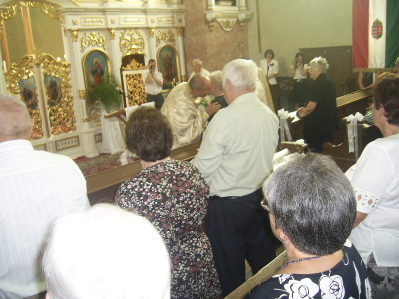 Az ünnepség jó hangulatú szeretetvendégséggel zárult a templom udvarán felállított sátraknál. Köszönet mindazoknak, akik – esperes úr vezetésével – a szervezésben fáradoztak, hogy a közös imádság után terített asztal, jó hangulat várja „odakint” is a vendégeket! Ritka esemény az aranymisével egybekötött aranylakodalom, amint egy, az ünnepségen részt vevő bedői lakos egyszerűen megfogalmazta: „Több, mint hatvan évet megéltem, de aranylakodalmas áldást még nem láttam”. Ezért mi is hálát adunk a Gondviselő Atyának, hogy papi (!) aranylakodalom résztvevői lehettünk!