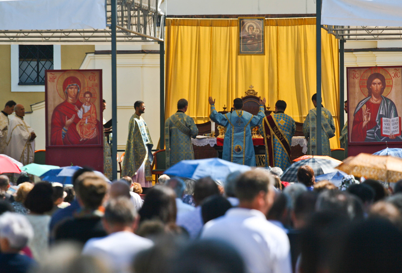A bekötözött lábú, sántító, tipegő, már csak papucsban vagy mezítláb lépegető kamaszok, egyetemisták, a temetőben parasztászon vettek részt, majd parakliszon, körmeneten, utrenyén, így virrasztottak vasárnap hajnalig imában. Ki-ki bemutatta a fáradtságát, sebeit, amit az Istenszülőért hozott, és letette lelki terheit is a Szűzanya elé, remélve, hogy neki is megadatik élete végén Isten kegyelméből az üdvösség, amit a Szent Szűz nyert el elszenderülésekor, mikor testestől vétetett a mennybe.