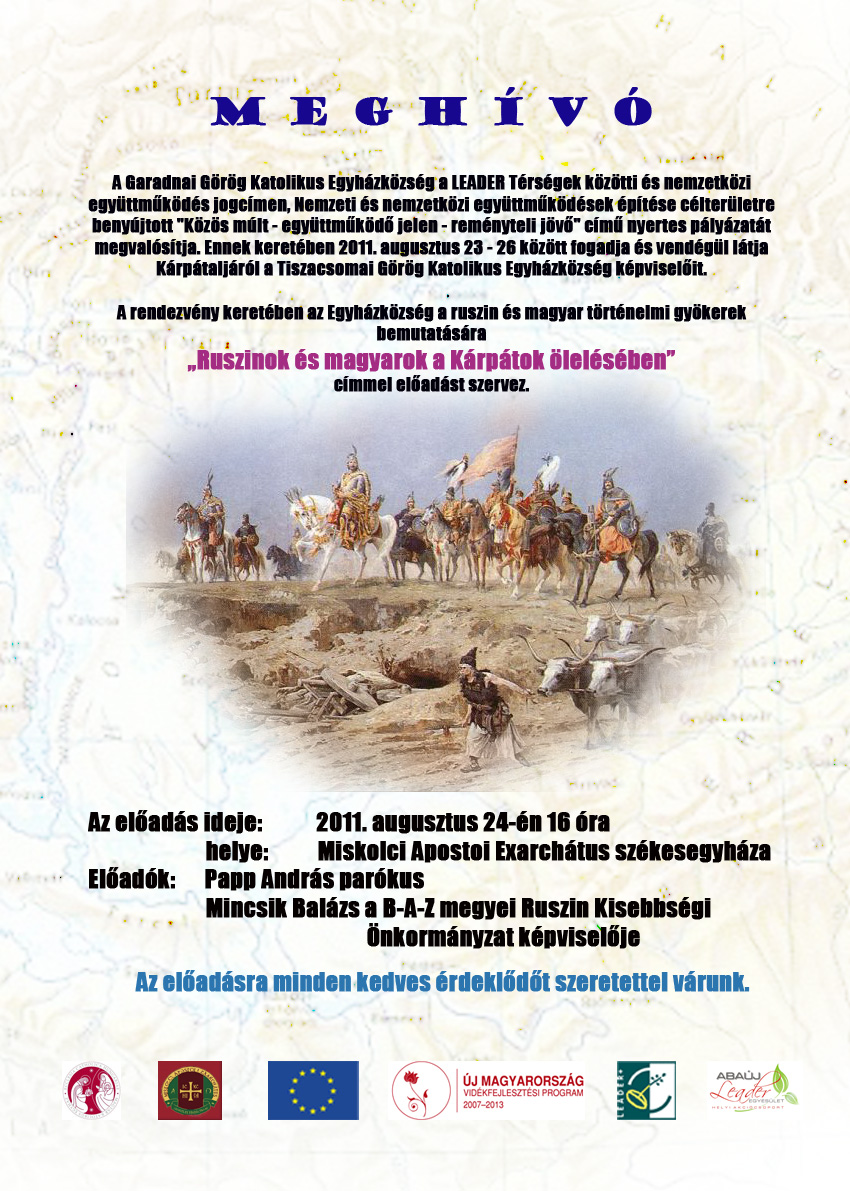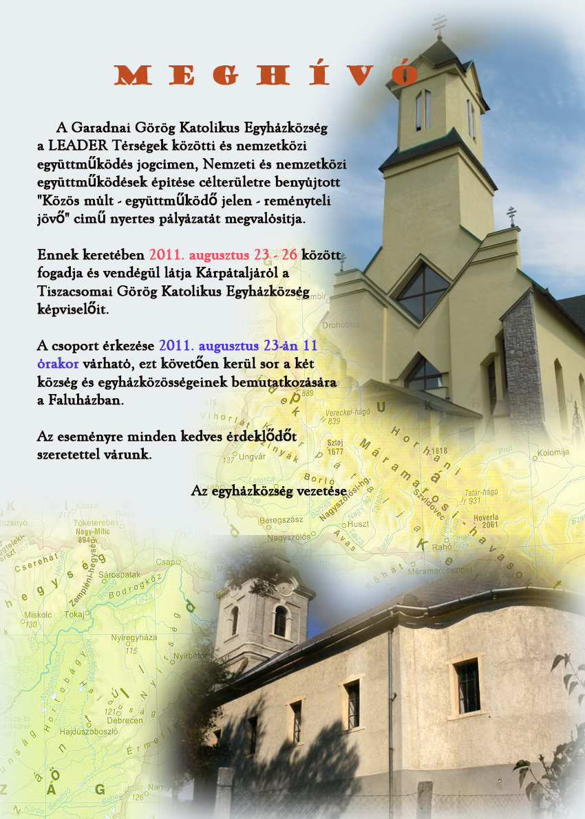 A Garadnai Görögkatolikus Egyházközség a „Nemzeti és nemzetközi együttműködések építésére” kiírt és elnyert LEADER pályázat keretében, 2011. augusztus 23-tól augusztus 26-ig vendégül látja a kárpátaljai (Ukrajna) Tiszacsoma Görögkatolikus Egyházközségének 40 tagját. A projekt megnevezése: „Közös múlt - együttműködő jelen - reményteli jövő”.