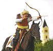 Szablya lóg az oldalán, kezében íj, veretes övén tegez, ivótülök, vászontarsoly, kés. Izzadt fején szőrmekarimás süveg, lábán könnyű bőrcsizma. Talán éppen így nézhetett ki egy honfoglaló magyar – mármint a katonáskodó rétegből való. A lovas íjásznak több mint ezerévesnek tűnik a lova is, egy jól táplált, kezes, barna mén. A fanyereg alatt nemezből vert alátét, finom, puha rackabunda a kényelemért, rajta bőrből hasított nyeregfüggöny. A férfi ügetésre nógatja a kortól már kissé nehéz mozgású lovat, majd vágtába csap, kifeszíti az íját, és klaszszikusan hátrafelé fordulva – ahogyan a történelemkönyvekben le van írva – pontosan telibe talál egy német páncélos lovagot ábrázoló kartonpapírt. A közönség részéről ováció az íjász jutalma, mire tesz még néhány kört az ellenséges kartonpapírok között, kelevézt vág egy vesszőfonatú állványba, szablyával lekaszabol néhány napraforgót – így ér véget a Nyírbogáton megrendezett félórás bemutató.