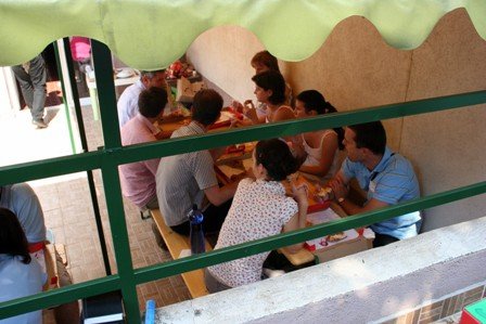 Így vágtunk neki a napnak, mely mondhatom, remekül sikerült. A Jóisten az időjárást tekintve is kegyes volt hozzánk, és a nagy melegre némi enyhülő hidegfronti hatás előszelét hozta. Papp Miklós atya gondoskodott a lelki és szellemi táplálékról, az egyik pizzázó pedig a testi táplálékról.