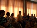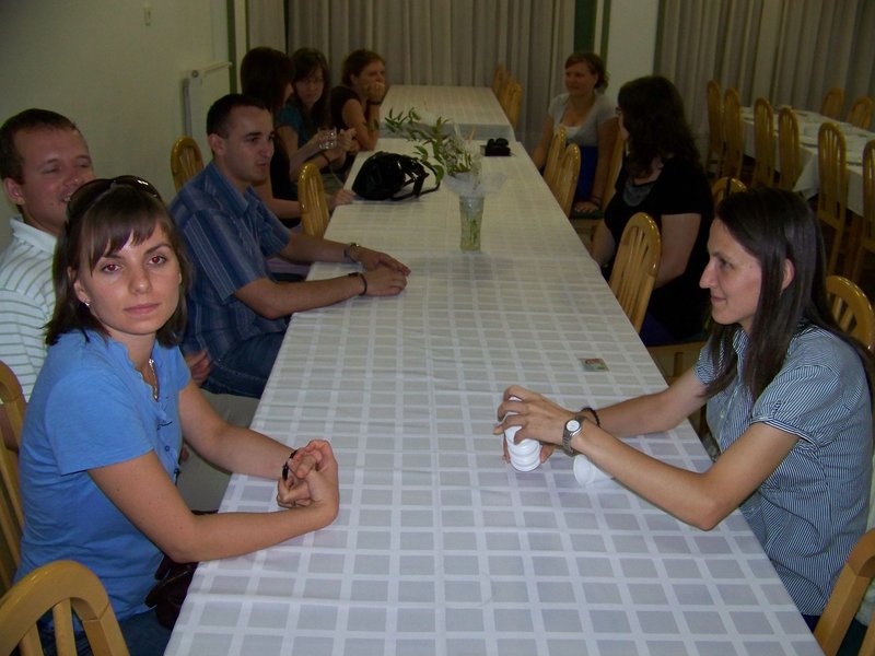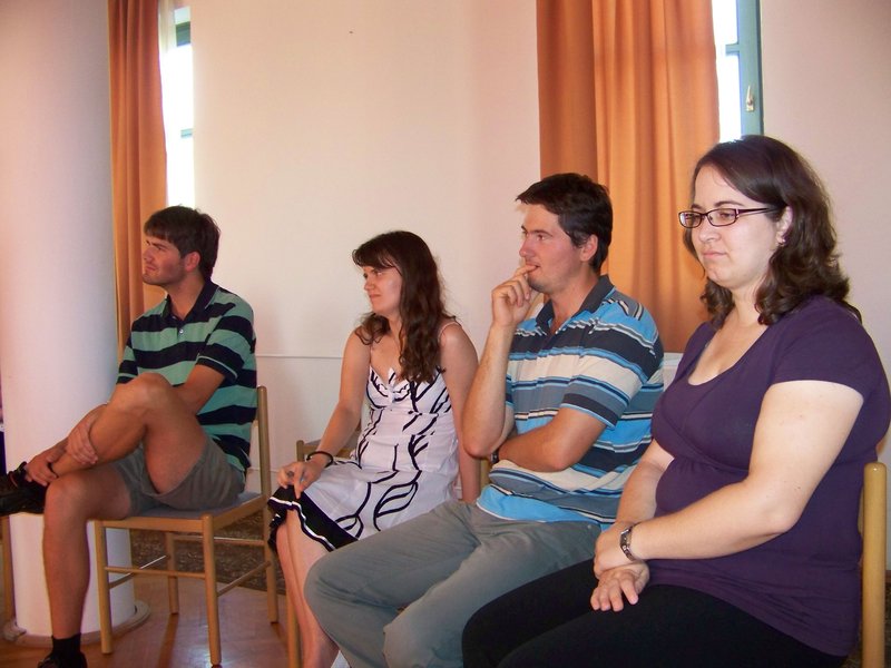 A lelki feltöltődést másnap délelőtt Kiss Zsolt atya biztosította számunkra. Leírhatnék egy-egy gondolatot a hallottakból, de ezek az előadások együtt voltak igazán értékesek, és aki lemaradt, az kimaradt. Délután pedig szituációs játékokkal gyakorolhattuk társas készségeinket, Makkai László atya vezetésével. Ezek során még a nevető izmainkat is bemelegíthettük az est hátralévő részére. Ugyanis az egész hétvége közösségi csúcspontja a szombat este volt. Közös gitározgatás-éneklés, imádság és közben Fülöp püspök atya, kihasználva a technika vívmányait telefonon volt velünk. Köszönjük esti gondolatait! Ezt követően a zarándokház előterében mókáztunk. Azt se sejtettem, hogy hajnalban már nehéz megjegyezni a saját nevem, ha épp aktuális pozíciómtól függően neveznek elnöknek, titkárnak vagy jegyzőnek… esetleg hármasnak. Ezután nyugovóra tértünk… volna!!! Nem tudom, a fiúknál hogy telt a hajnal, mi lányok majdnem pirkadatig beszélgettünk. Ekkor azt éreztem, hogy a hónapok, találkozások során egyre jobban kinyíltunk egymás felé, egyre több mindenről merünk beszélgetni. Nem tudom, hová fejlődik majd ez a közösség, de most nagyon jól esett Máriapócson tölteni egy hétvégét, s bízom benne, hogy még sok közös programon vehetünk részt, és egyre nagyobb bizalommal tudunk majd egymás felé fordulni. Már most várom a novembert, mert akkor ünnepeljük az első KEFIT-évfordulót!!!