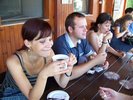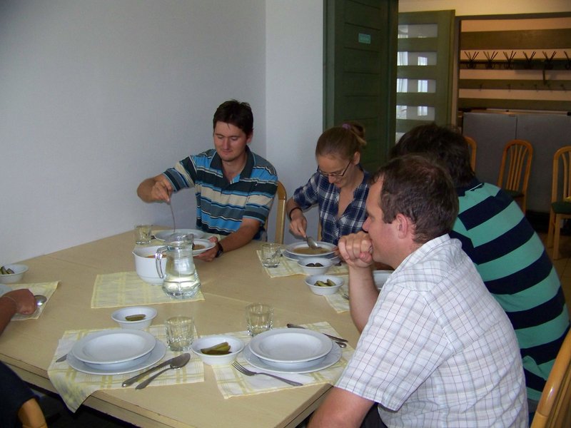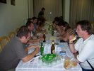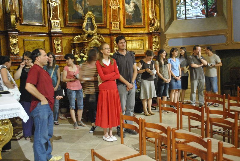 A szombati napot a születésnaposunk köszöntésével, egy kis játékkal és hosszú beszélgetésekkel fejeztük be. Hogy kinek meddig tartott a beszélgetés, azt reggeli közben egymás arcáról olvastuk le. A Szent Liturgia előtt még közösen megbeszéltük a hétvége történéseit, és megfogalmaztuk kritikáinkat – természetesen mindezt jobbító szándékkal – és javaslatainkat. Majd közösen részt vettünk a Szent Liturgián a Bazilikában, a prédikációt hallgatva meglepődve tapasztaltuk, hogy Mosolygó Tibor atya szavai mennyire kapcsolhatók a hétvégén elhangzottakhoz. S hogy mindez tudatos volt-e, vagy sem, az nem derült ki, a fontos az, hogy hétvégével együtt ez is épülésünkre szolgált. A Szent Liturgiát a „búcsúebéd”, a búcsúzkodás, majd a hazaindulás követte.