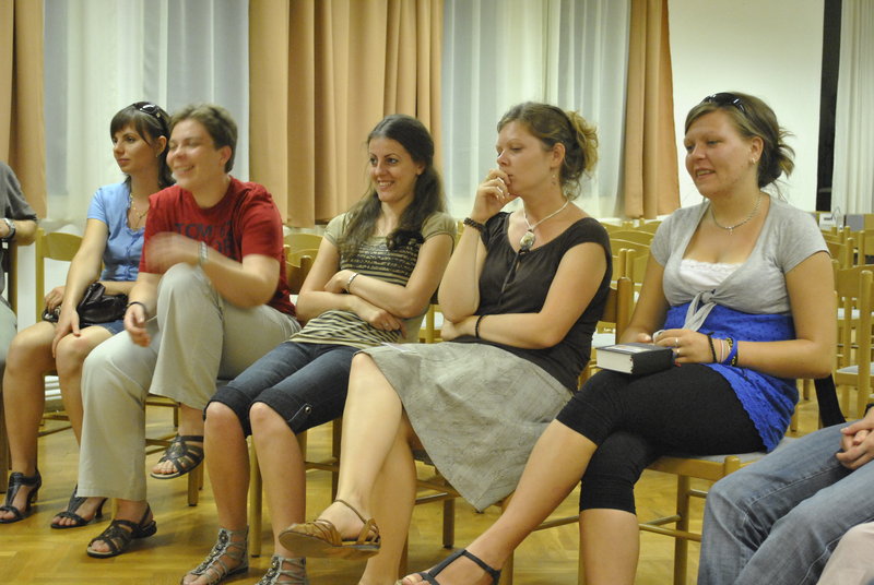 Másnap, szombat délelőtt Kiss Zsolt nyírbátori parókus atya tartott igazán élvezetes és lélekemelő elmélkedéseket. Délután Makkai László atya segített nekünk tovább gondolkodni. Este a templom előtt énekeltünk, imádkoztunk, mikor meglepetésszerűen telefonon kapcsolódott be hozzánk Fülöp püspök atya. Köszönjük esti gondolatait. Majd kisebb csoportokban folytattuk a pénteken megkezdett beszélgetéseket.