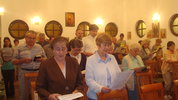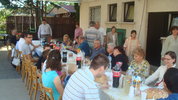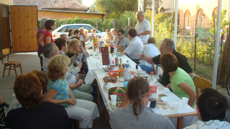 Szeptember 24-én, szombaton délután ragyogó napsütésben kocsikaravánnal érkeztek vendégeink, és bemutatkozás után egyből a terített asztalhoz ültünk, hogy Kati néni gulyás levesével csillapítsuk éhségünket. Amikor a hívek által hozott süteményre került sor, már felváltva mutatkoztak be közösségeink.
