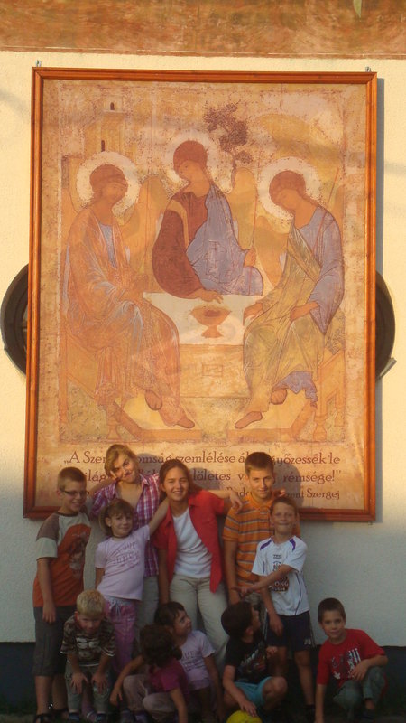 A bőséges és finom ebéd után a gyerekek az udvaron hintáztak, fociztak, mi felnőttek pedig beszélgettünk, ismerkedtünk. Betekintést nyertünk egyházközségeink életébe, programjaiba. Mi a Nagy Szent Bazil Rend világi ágának, a Bazilita Harmadrendi csoportunknak programjaival, összejöveteleink céljával ismertettük meg a keresztúri híveket. Marcell atya említette is, hogy szeretnének e lelkiségi közösség tagjai lenni. Megismertük Egyházközségeink történetét, kápolnáink építésének körülményeit, és nálunk szolgáló parókusaink, püspökeink nevét és életét.