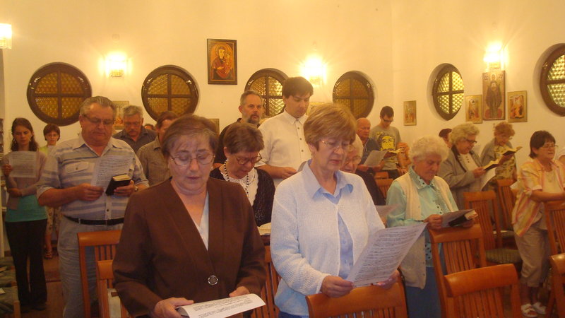 Együttlétünk csodálatos vecsernyével zárult, melyre készülve egy lapra előre leírtam a sztihirák hajlításának rendjét, hogy szépen menjen az ének. Felemelő érzés volt, hogy mintegy 55-en együtt tudtuk dicsőíteni föltámadt Urunkat! Tömjénnel és egymásra figyelő énekhanggal telt meg kápolnánk. Szép emlék marad találkozásunk, közösségi és egyéni beszélgetéseink. Köszönjük mindazoknak, akik eljöttek, hogy megismerjük egymást!