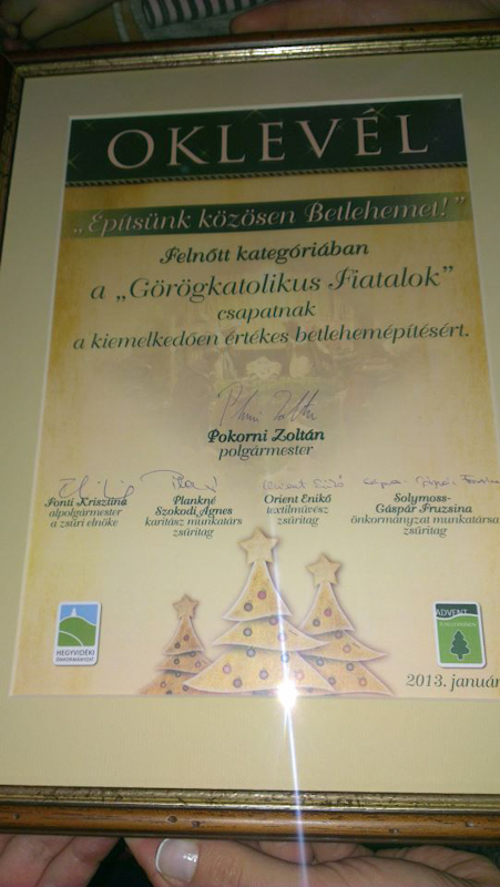 A gyermekek kategóriájában a Jókai Általános Iskola második osztályosaiból alakult Jókais Angyaloknak ítélt díjat a zsűri, míg a felnőttek mezőnyében a Szinaxis Görögkatolikus Diákotthon fiataljainak munkáját díjazták. A „több nemzedék” kategóriában az Angyalszárny nevű csapat kapott díjat, melyben gyerekek, felnőttek és az idősebbek együtt hoztak létre egy szépen megmunkált betlehemet.