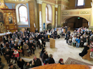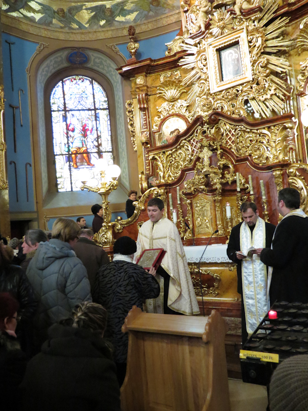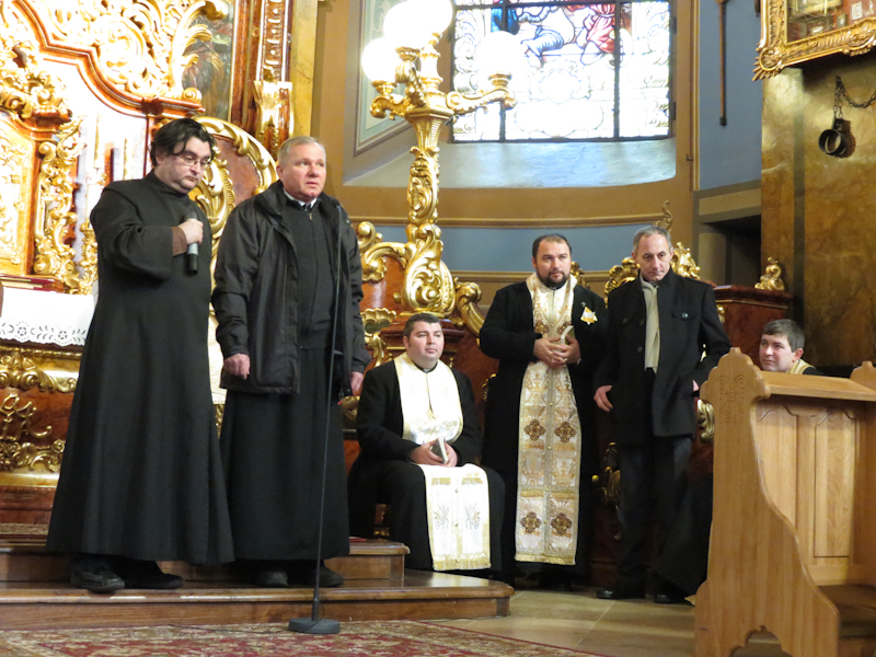 Ez a távolinak hangzó óhaj hamar valósággá vált kegyhelyünkön: január 26-án majd 200 zarándokot fogadhattunk Nagykárolyból és Szatmárnémetiből, magyar- és románajkú, görögkatolikus ás római katolikus testvéreket. A kegykép köszöntése, a két nyelven végzett paraklisz (mely alatt szintén két nyelven biztosítottunk gyónási lehetőséget) után a jó kedélyű, érdeklődő csoportnak bemutattuk a kegyhelyet. Vidám hangulatú ebéddel zárult a zarándoklat, mely talán átlagosnak tűnhet, de valójában egy kialakulóban lévő közös, magyar-román érrendszer első szívdobbanása is lehet.