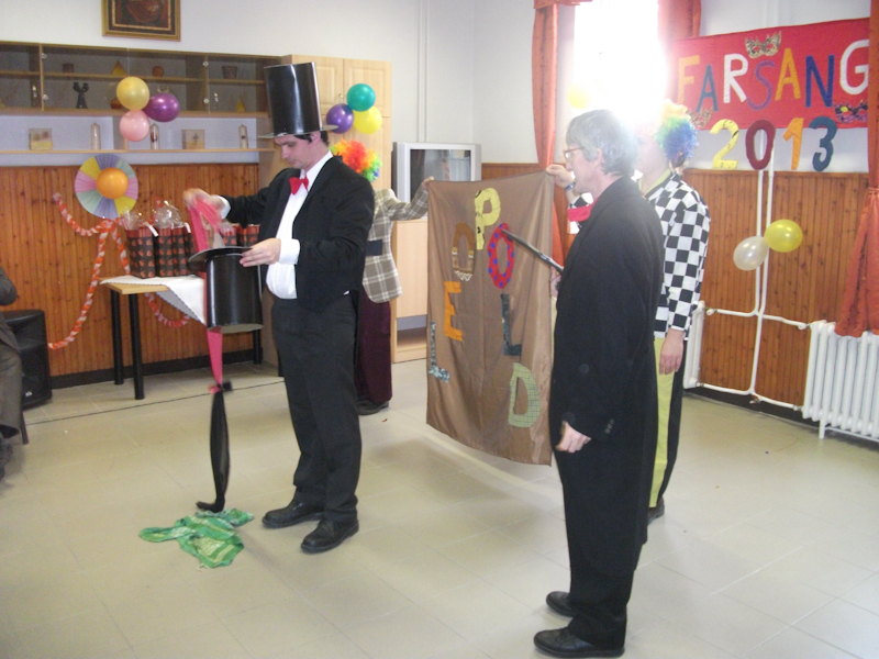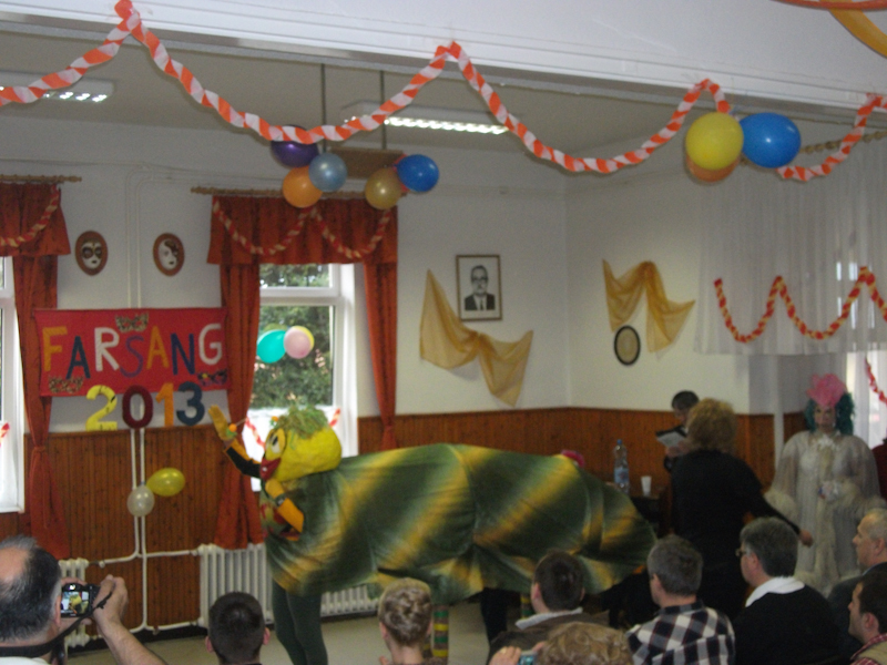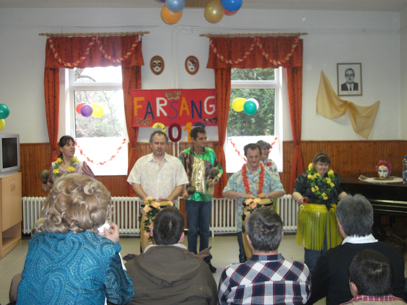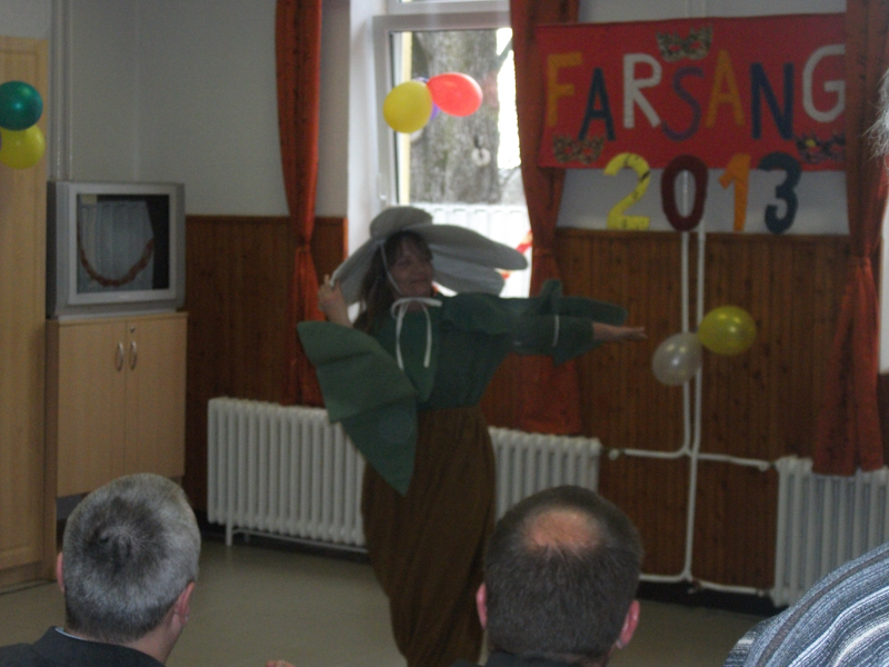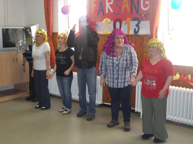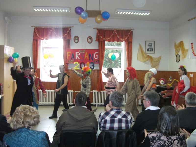 Intézményünkben a hagyományokhoz híven megrendeztük a farsangot 2013. február 04-én. Ellátottaink és segítőik ötletes, kreatív és személyre szabott jelmezekkel emelték a farsang színvonalát, mely elődöntője volt a nemzetközi farsangnak. Meglepetésként vonultak fel saját jelmezeikben a dolgozóink gyerekei, unokái, melynek nagy sikere volt. Jelmezverseny után a zsűri értékelte a produkciókat, majd farsangi csőröge elfogyasztása és farsangi bál következett. Nagyon jó hangulatban telt el a nap.