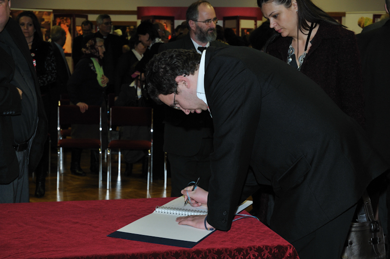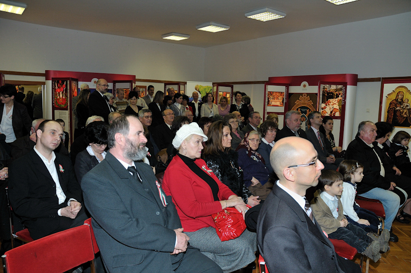 Március 14-én 17 órától került sor Vásárosnaményban a Centenáriumi Emlékkiállítás megnyitójára, a Hierotheosz Egyesület és a Vásárosnaményi Görögkatolikus Egyházközség szervezésében. A rendkívüli időjárás ellenére szép számmal, mintegy nyolcvanan, gyűltünk össze az Esze Tamás Művelődési Központ kiállító-termébe, ahol Lukács Imre esperes úr üdvözölte az egybegyűltek. A rendezvényt az előző nap megválasztott szentatya, Ferenc pápa éltetésével, a pápai himnusszal kezdtük. A város lelkipásztorai közül Ft. Marossy József plébános úr és Nt. Dr. Pótor Imre református lelkész úr és kedves felesége, Dr. Pótorné Beregszászi Erzsébet tiszteletes asszony is megtisztelte jelenlétével rendezvényünket.