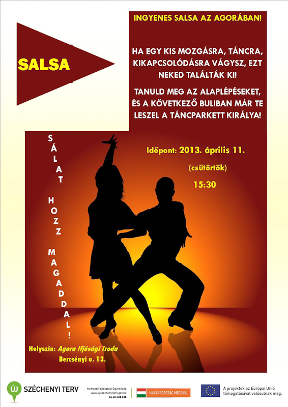 Ha egy kis mozgásra, táncra, kikapcsolódásra vágysz, ezt neked találták ki! Tanuld meg az alaplépéseket az Agorában ingyenes Salsa oktatásunk keretében!
