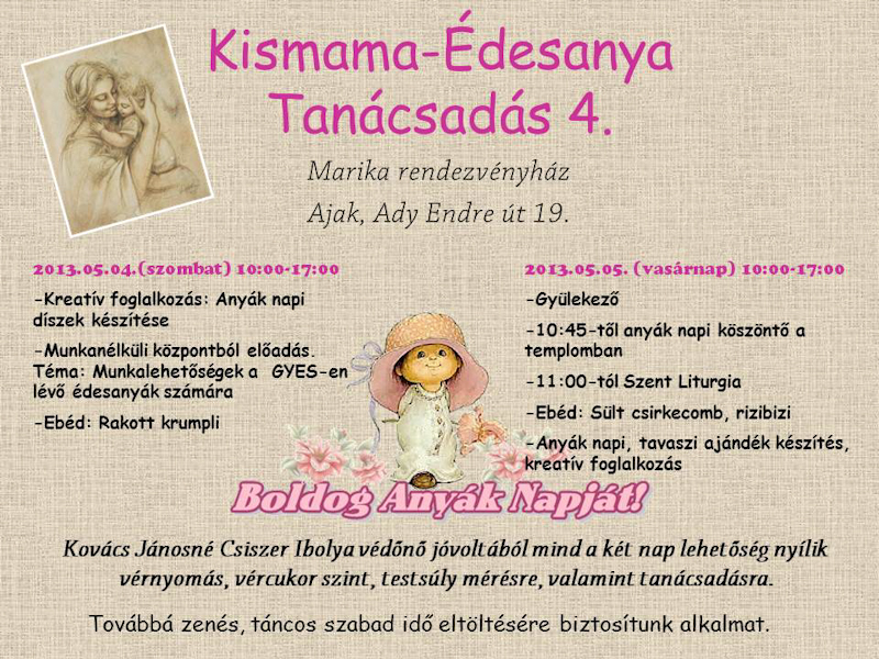 Szeretettel hívjuk a kisbabás- kisgyerekes édesanyákat és gyerekeiket családprojektünk következő rendezvényére Ajakon.