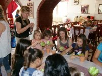 A legutóbbi találkozó óta, amikor először nyílt lehetőség arra, hogy akit érdekel megmérethesse a vérnyomását, testsúlyát, és más fontos fizikai, biológiai adatát is megtudhassa, nos, azóta ugrásszerűen megnőtt az ezt igénylők, kérők száma. Volt tehát dolga ezen a hétvégén Kovácsné Csiszer Ibolya védőnőnek, aki mindkét tanácsadási napon rendelkezésre állt. Jöttek is nagyon sokan. A legtöbben a vérnyomás és a vércukor szint adatokra voltak kíváncsiak. A munkaügyi központból, Pásztorné Révész Ildikó tartott tájékoztatót, a gyes alatti munkalehetőségekről, képzési lehetőségekről. Mint a résztvevők kérdéseiből is kiderült, ez egy nagyon fontos, és sokakat érintő téma. Különösen annak fényében, hogy az elmúlt időszakban szinte teljes egészében átalakultak az ezt érintő jogszabályok. Márpedig ez az egész „zsebre megy”, akad olyan család is, ahol az innen származó összeg a család egyik legfontosabb bevételi forrása, mivel az apa éppen munkanélküli. Érdemes volt tehát odafigyelni, és lehetett is hasznos információkat hallani szép számmal. Aki nem akarta a saját ügyét mindenki előtt megbeszélni, annak lehetősége volt egyéni tanácsadást is kérni. Érdekes volt hallani, hogy a családi bevételek másik, egyre fontosabb része az a pénz, amit a család fiatalabb tagjai diákmunkával keresnek. Ennek a szabályozása és egyéb lehetőségei iránt is nagy volt az érdeklődés. Közben, hogy senki ne fásuljon bele a sok komoly és száraz információba, a helyi favorit együttes szórakoztatta a jelenlévőket. Talán nem meglepő, de az egy fiúból és egy lányból álló csapatot Favoritnak is hívják, és ahogy kiderült, már nem csak lakóhelyükön, Ajakon favoritok, hanem lassan igazi kis rajongó táboruk alakult ki a térségben. Főként a vidéki emberek által nagyon kedvelt sláger zenét játszanak, és mivel hallottak az Ajaki Görögkatolikus Egyházközség családprogramjáról, önként jelentkeztek, hogy bizony ingyen és bérmentve zenélnének, ha befogadja őket a közösség. Örömmel látta őket mindenki. Ez is csak azt támasztja alá, hogy milyen sokszínű a görögkatolikus hívők közössége, hiszen az együttes tagjai is a görögkatolikusok.. A második napon a legméltóbb helyen, a templomban zajlott az édesanyák köszöntése, anyák napja alkalmából. Az ovisok és az iskolások is adtak műsort, majd virággal köszöntötték édesanyjukat. Igazán szemet gyönyörködtető volt látni és hallani ezeknek az ügyes, tehetséges kis emberpalántáknak a műsorát, és látni azt a szeretetet, ami sugárzott róluk édesanyjuk felé. A köszöntésen túl a hívők számára Szent Liturgiára is sor került. Mindkét napon lehetőség volt kreatív foglalkozásra is, Zámbó Mariannal stílusosan anyáknapi díszeket, és apró ajándékokat készítettek az ügyes kezű gyerekek.