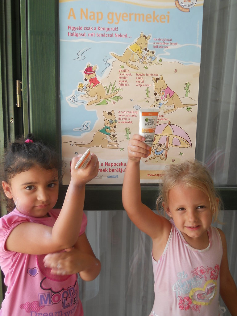 A „Nap gyermekei„ pályázaton naptejet nyertünk, amelyet most a nagy melegben nagyon jól tudunk hasznosítani a gyerekeken.