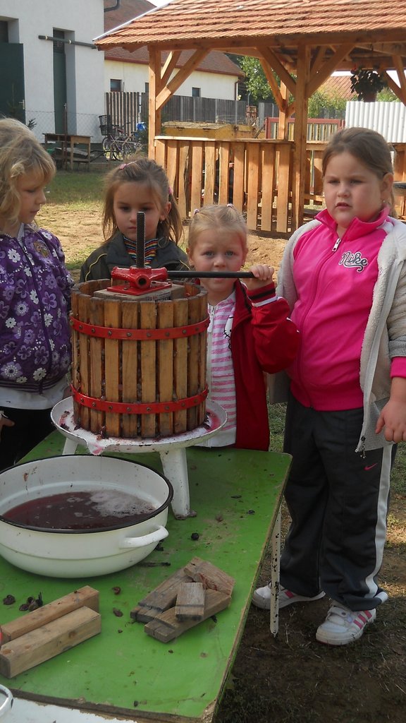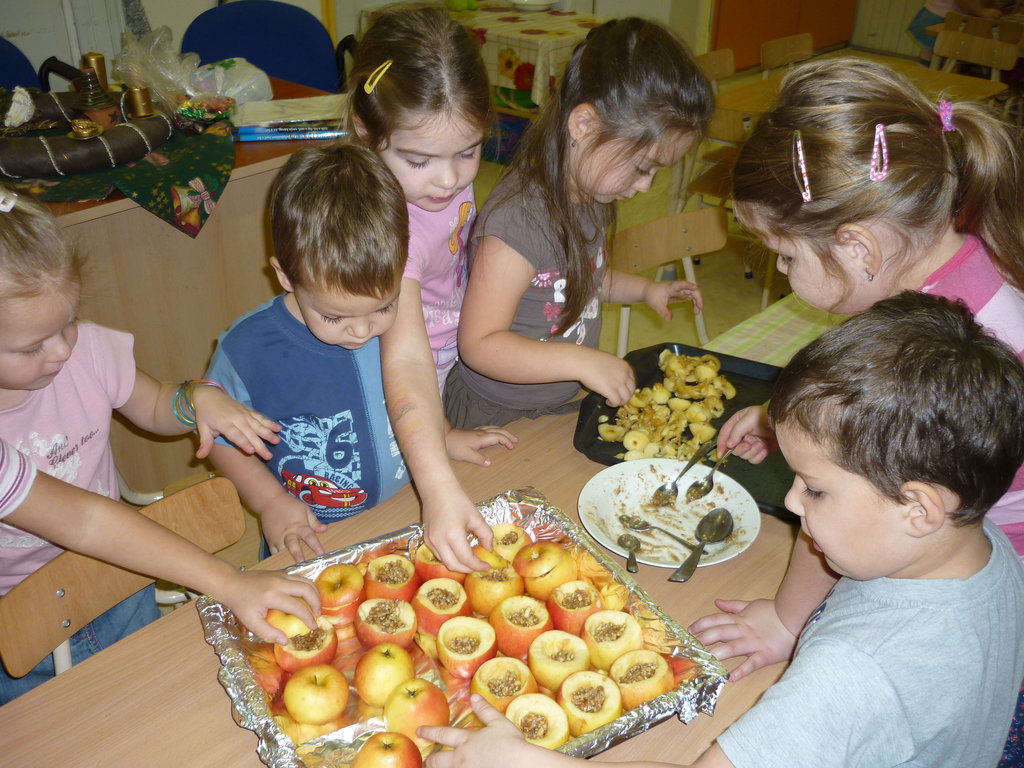 A néphagyománynak megfelelően készítettünk közösen a gyerekekkel sárgatúrót, kalácsot sütöttünk a kemencében, kolbász, sonka főtt az üstben, komatálat kaptak a csoportok.