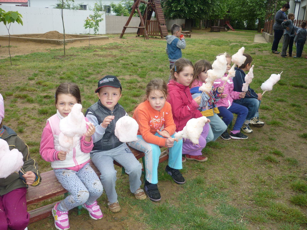 Itt volt a kisvonat , mellyel utaztak , az ugróvár, vattacukrot majszolhattak a gyerekek.
