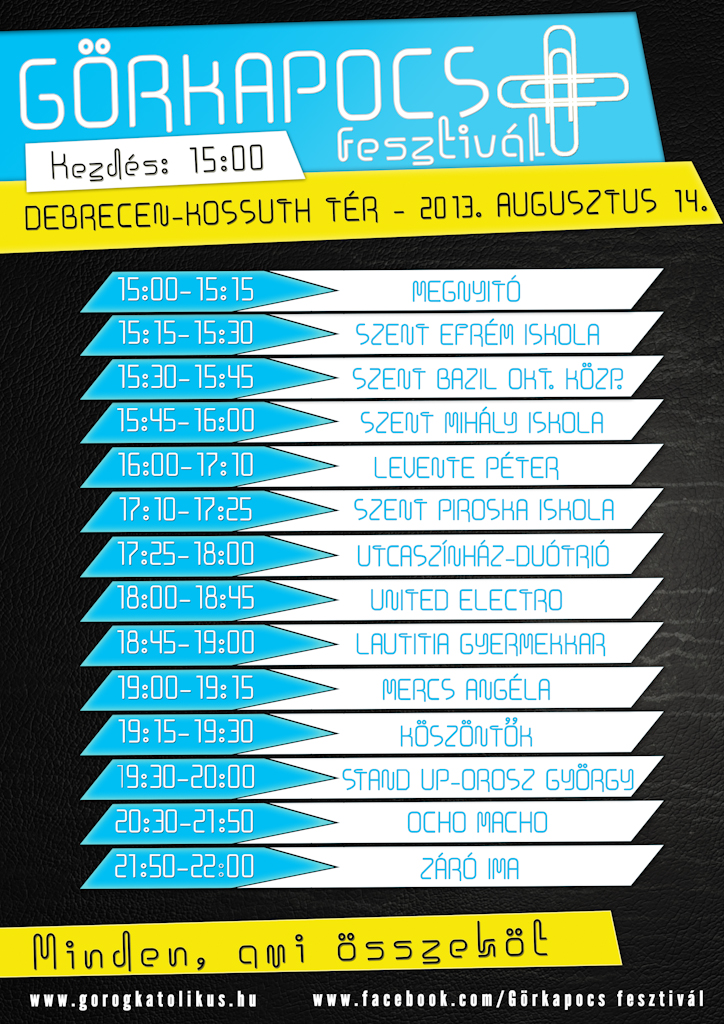 Az elmúlt évhez hasonlóan Hajdúdorogi Egyházmegye idén is megrendezi 2013. augusztus 14-én a Görkapocs Fesztivált, ezúttal Debrecen főterén. Az esemény most is egybekapcsolódik az évente Máriapócsra szervezett Ifjúsági Gyalogos Zarándoklattal. A fesztivál célja, hogy az egyházmegye kinyíljon a város és az emberek felé, megismertesse velük hagyományát és értékeit, valamint hogy megmutassa, az egyház hogyan és miként képes a XXI. században együtt élni, együtt tevékenykedni és együtt haladni a kor emberével, kultúrájával, eszközeivel. Ennek keretén belül interaktív sátrakban bemutatkoznak a görögkatolikus egyház oktatási és szociális intézményei, közösségei, borászai, valamint a nagyszínpadon fellépnek egyrészt a görögkatolikusság sokszínűségét példázó kórusok, táncosok, másrészt a keresztény értékeket a modern világban felvállaló és azokat hirdető előadók.