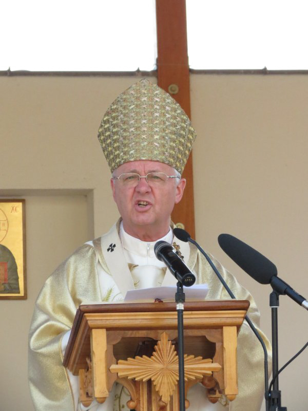A máriapócsi Szűzanya és Isten áldását kérjük arra a munkára, amit feladatként kaptunk az új egyházmegyével. Nemzetünk Pátrónája, a Magyarok Nagyasszonya, az Istenszülő, aki közbenjár értünk mindenkor, segít, hogy a Szentlélek ajándékait helyesen fel tudjuk használni egyházmegyénk javára. Az elmúlt 20 évben dinamikusan fejlődött az egyházmegye, templomépítésekkel, iskolák, más intézmények átvételével, beindításával. A népek világossága Krisztus - hirdette a II. Vatikáni zsinat - ma is ez a legfőbb küldetése az egyházmegyénknek, hogy minden emberhez elvigyük Jézust. Életünk középpontjába kell helyeznünk Krisztust. Meg kell tanulnunk Isten szemével látni a világot. A perikópában hallottuk, hogy az ima milyen változást okozott a Megváltóban, ezért kérték Őt az apostolok, hogy tanítsa meg nekik a Miatyánkot. Az ima békét, harmóniát, örömöt okoz a lelkünkben, felfrissít. Imánk középpontjában az Atya kell, hogy álljon, nem a saját problémáink, kéréseink. A magyar szentek járjanak közben a 20 éves egyházmegyénkért, tegyünk tanúságot hitünkről, hogy a feltámadás örömhíre eljusson mindenkihez, és így mindenki üdvözülhessen - mondta el Bosák Nándor.