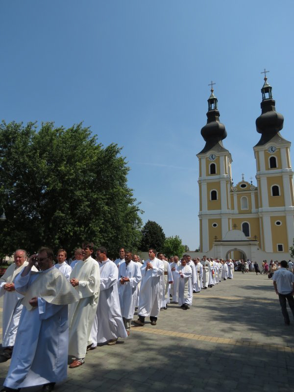 Minden eddiginél nagyobb számban érkeztek nemzeti kegyhelyünkre római hittestvéreink a július 28-i, vasárnapi zarándoklatra, mely megemlékezés, hálaadás volt az egyházmegye alapításának 20. évfordulójának alkalmából. A Hit éve vándorkeresztje is mutatta, melyet a hívek magukkal hoztak, a zarándoklat hűségnyilatkozatát Jézus és az egyház mellett.