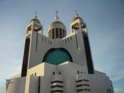 A délutáni imádság a fölszentelendő székesegyház előtt folytatódott a vecsernyével. Ennek keretében hozták át a közeli fatemplomból az ereklyéket, és az Enyhe világosság himnuszra vonultak be ünnepélyesen az óriási templomba. Az épület még nincsen egészen készen, egyelőre csak ikonosztázt jelző négy ikon különíti el a szentélyt, és a fehér falak is várják a mozaikból készítendő ikonokat.