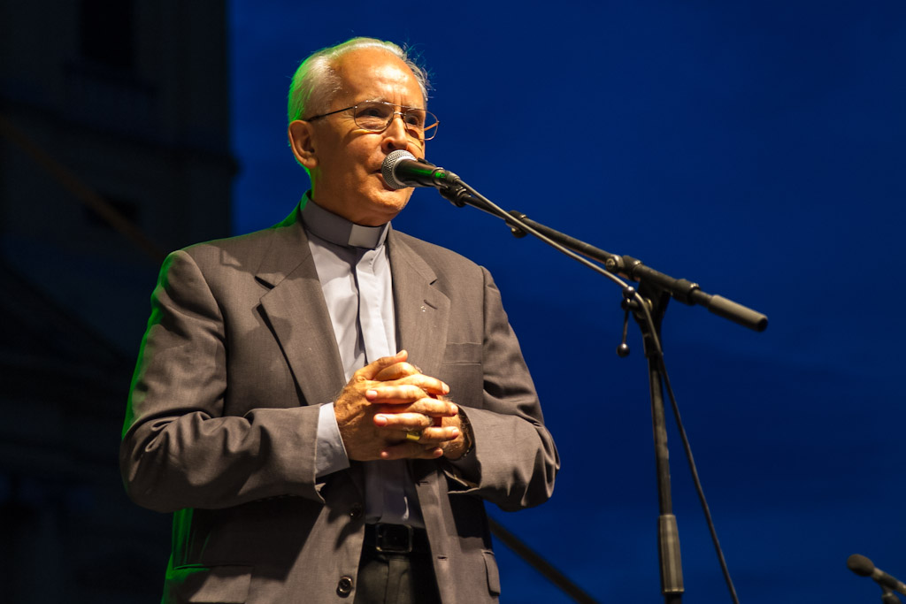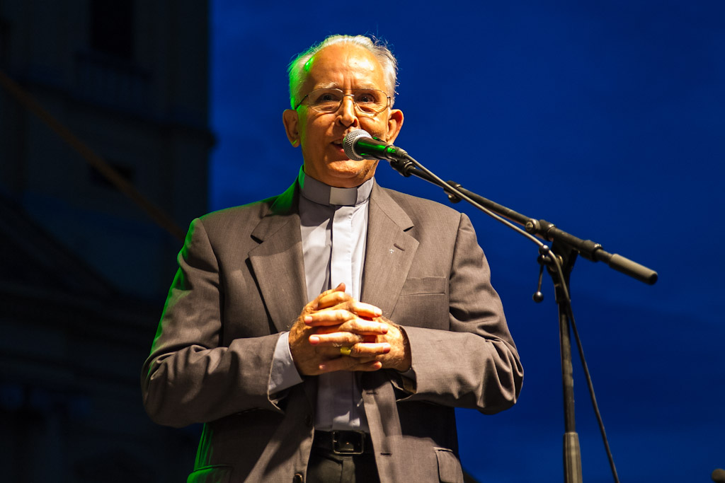 De aztán meghallgatjuk a fesztivált köszöntő püspököket, Fülöp Püspök atyát, Bosák Nándor püspök urat, a város alpolgármesterét, dr. Papp Lászlót, és Kiss Norbert államtitkár urat. Az elismerő szavak, a biztatás jól estek, és a kérés hogy, „imádkozzunk az országunkért, és benne a fiatalokért”, nyitott kapukat döngetett.