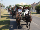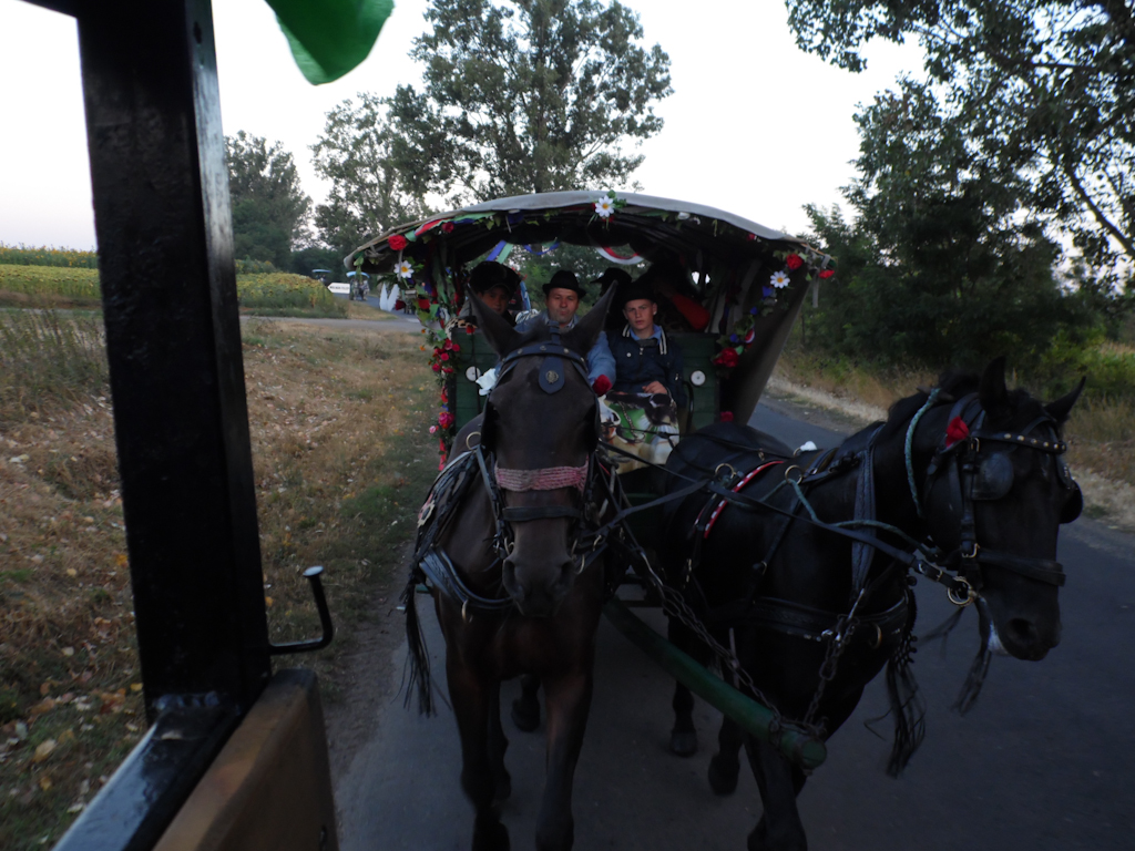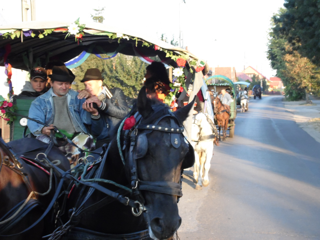 Induláskor Dalanics Zoltán parókus úrral közösen imádkozva kértük a jó Istent a zarándoklatunk megsegítésére, majd a lovasfogatok megáldása után útnak indultunk. A zarándoklaton 13 lovaskocsi vett részt, amelyeket virágokkal, szalagokkal és színes fényű lámpákkal díszítettünk. A zarándokok között fiatalok és idősek egyaránt voltak. Az út során Szűz Máriát dicsőítő énekeket énekeltünk. Megható volt látni, hogy ez a kis közösség milyen erős hittel, lelkesen indult útnak. Máriapócsra megérkezve parókus úr vezetésével köszöntöttük „a Pócsi szép templom csillagát”. Szállásaink elfoglalása után Papp György, a Hajdúdorogi Hagyományőrző Lovas Egyesület elnökének irányításával gulyáslevest készítettünk. Az ebéd elfogyasztása után finom borokat fogyaszthattunk, amelyet a Hajdúdorogi Ifjú Borbarátok ajánlottak fel. Este a pócsi temetőben imádkoztunk halottainkért Ihnáth János atya vezetésével, majd a kegytemplomban hajnalig tartó virrasztáson vettünk részt.