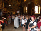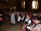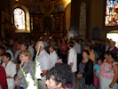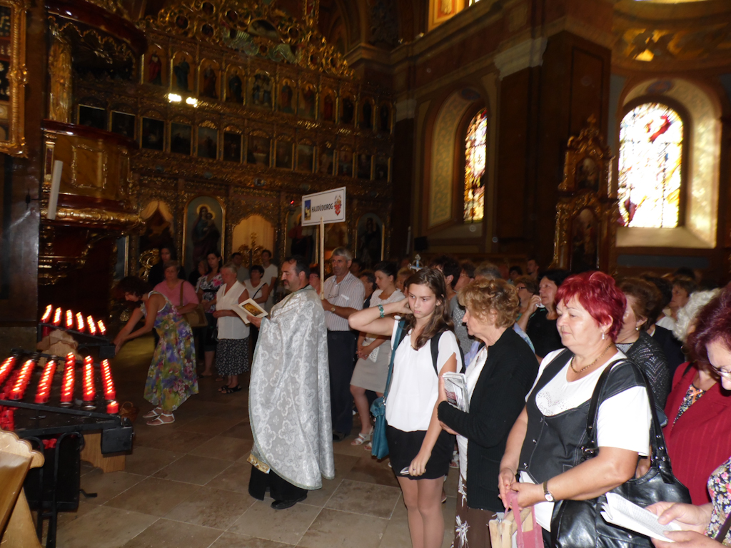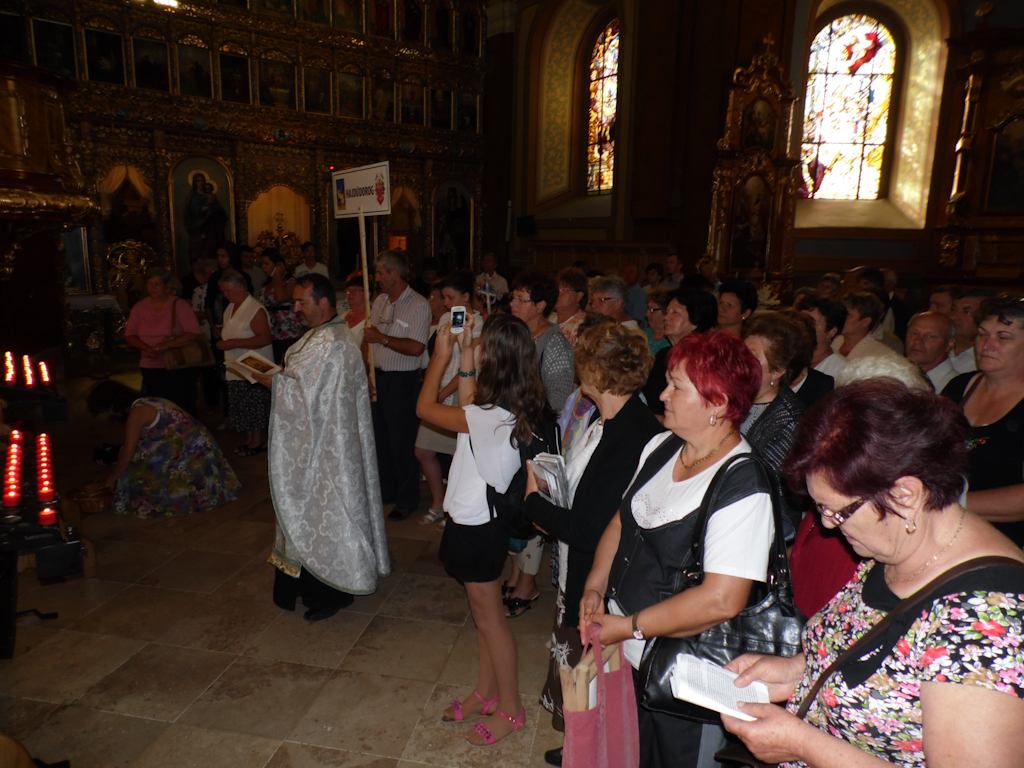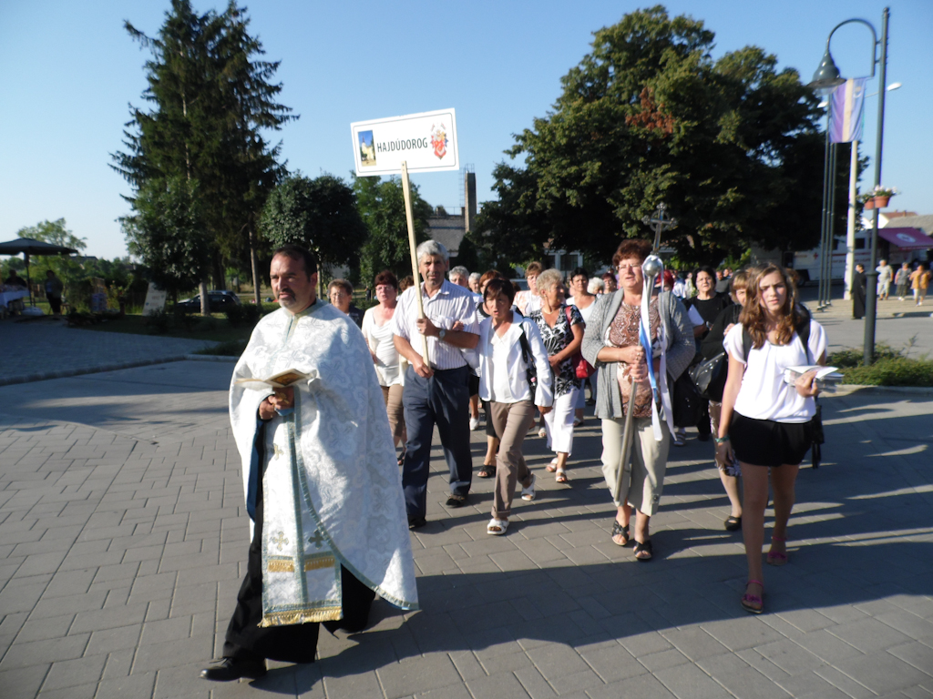 Másnap az ünnepi Szent Liturgián Keresztes Szilárd püspök vezetésével imádkoztunk a zarándoklaton résztvevőkért, családtagjainkért, az itthon maradottakért és az egyházunkért. A liturgia után Szűz Máriától elköszönve indultunk haza Hajdúdorogra. Városunk határában várt ránk és köszöntött minket a proseció. Így a több száz ember együtt vonult a székesegyház felé. Az úton haladva a házak ablakait virágokkal és égő gyertyákkal díszítették fel. A templomkertbe érve parókus úr örömét fejezte ki és köszönte meg az igen nagy számban való részvételt Hajdúdorog város lakosainak. Ezután a templomban hálát adtunk a jó Istennek, hogy megsegített a zarándoklat során.