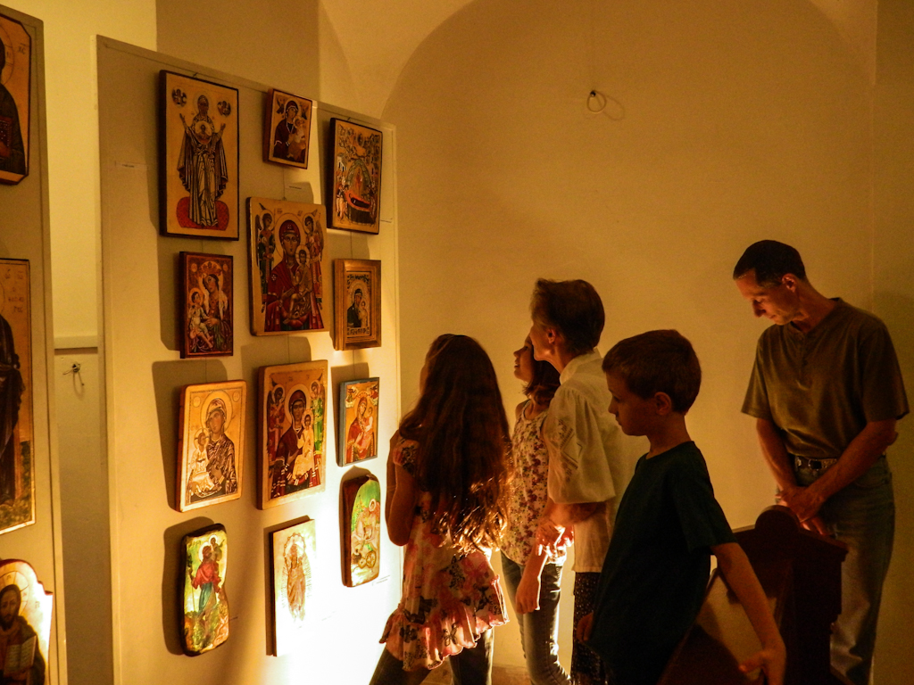 Templomunkban, az esztergomi görögkatolikus templomban augusztus 25-én, vasárnap ikonkiállítást rendeztünk. Már több kiállításunk volt (esztergomi görögkatolikus templomban, esztergomi belvárosi templomban, a budapesti belvárosi ferences templomban, a kárpátaljai Nagyszőlősön, valamint a kecskeméti Cifra Palotában), amivel sok örömet szereztünk a látogatóknak és magunknak is.