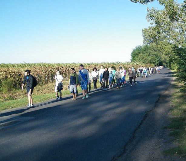 Az első 10-20 km-t mindenki könnyedén tette meg, de aztán jöttek a nehézségek, a bicegő lépések, s az utolsó kilométereken már látszódott a zarándokok szemében a kimerültség, a fájdalom.