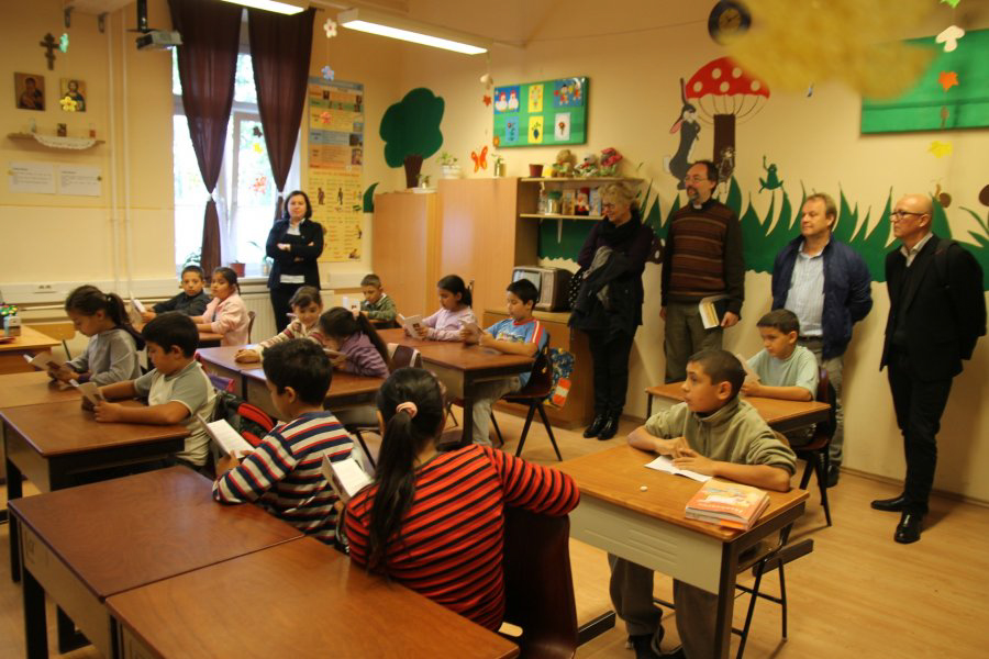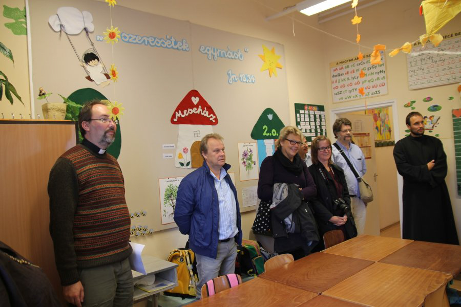 2013. szeptember 24-én elsőként a huszár-telepi iskolánkat látogatták meg, ahol a könyvtárban rövid tájékoztatást kaptak a telepről, az iskoláról, a görögkatolikus egyház oktatási tevékenységéről, majd rövid látogatást tettek az osztálytermekben, ahol énekkel, verssel fogadták a vendégeket.