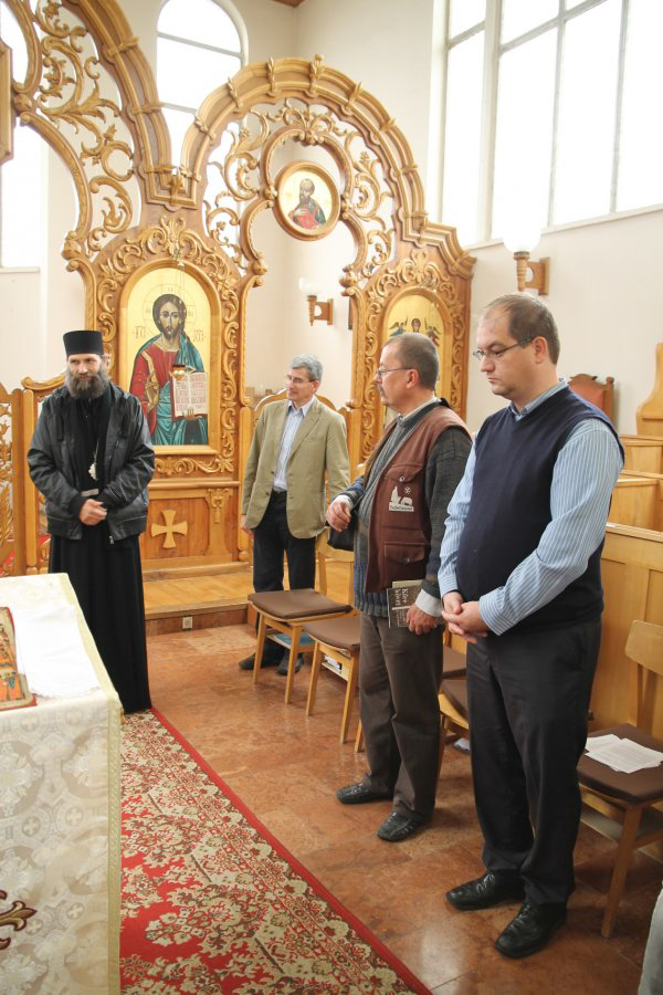 Ezt követően a püspökségen Kocsis Fülöp püspök atya, Seszták István és Kruppa Tamás helynök atyák fogadták a vendégeket. A püspökség kápolnájában rövid összefoglalót kaptak a görögkatolikusok történetéről, majd Fülöp püspök atya az ebédlőbe invitálta a vendégeket. A kötetlen baráti beszélgetés jó alkalmat teremtett arra, hogy megismerjék egyházunkat, betekintést nyerjenek cigánypasztorációs munkánkba, jó hírünket Svédországba is elvigyék.