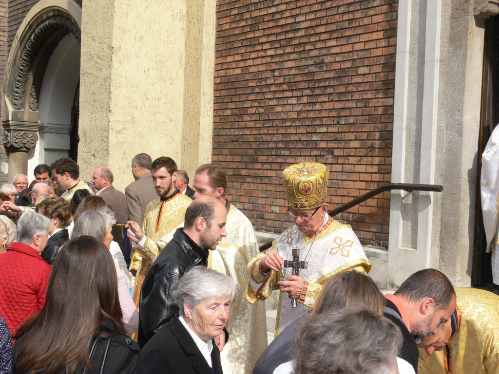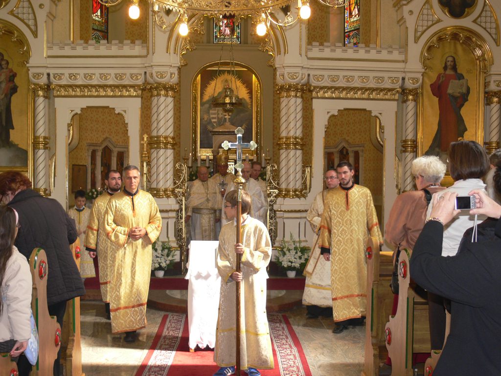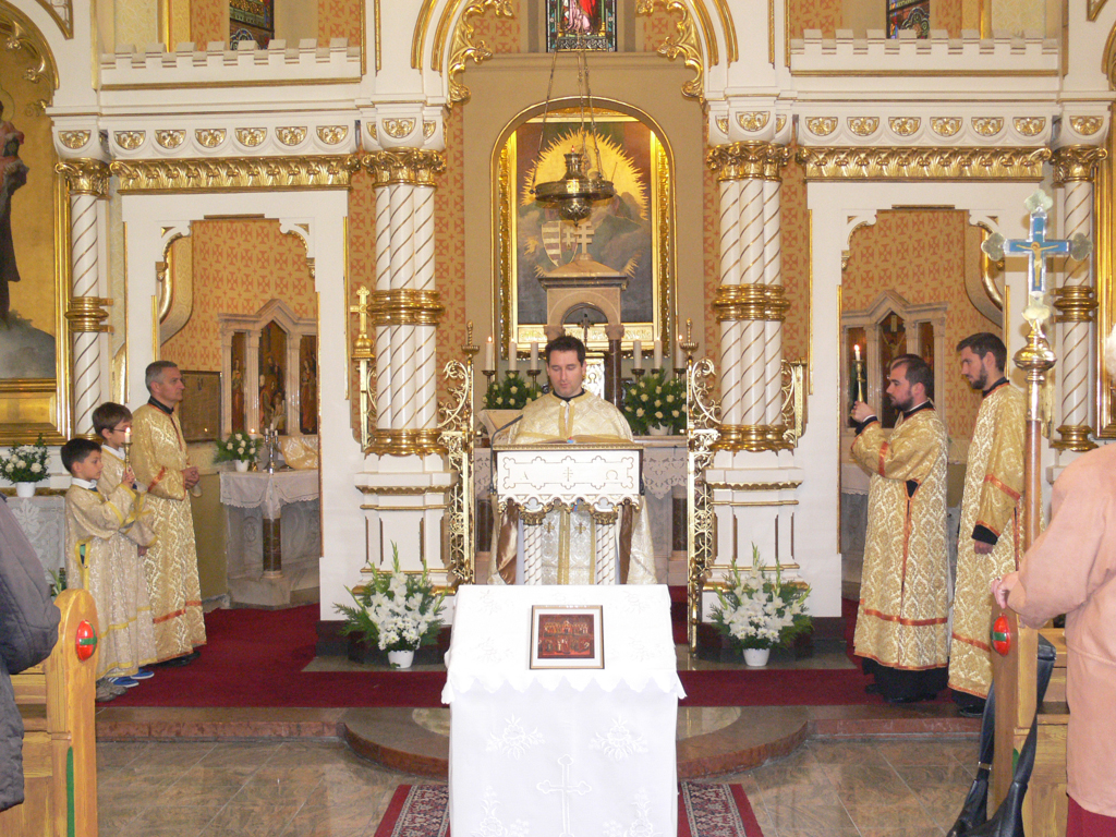 A liturgiát körmenttel folytattunk, majd elénekeltük a pápai és a magyar himnuszt. Az áldás után miroválás volt. A szertartást, ünnep lévén, az agapé követte, ahol a hívek által készített finomságokat lehetett elfogyasztani.