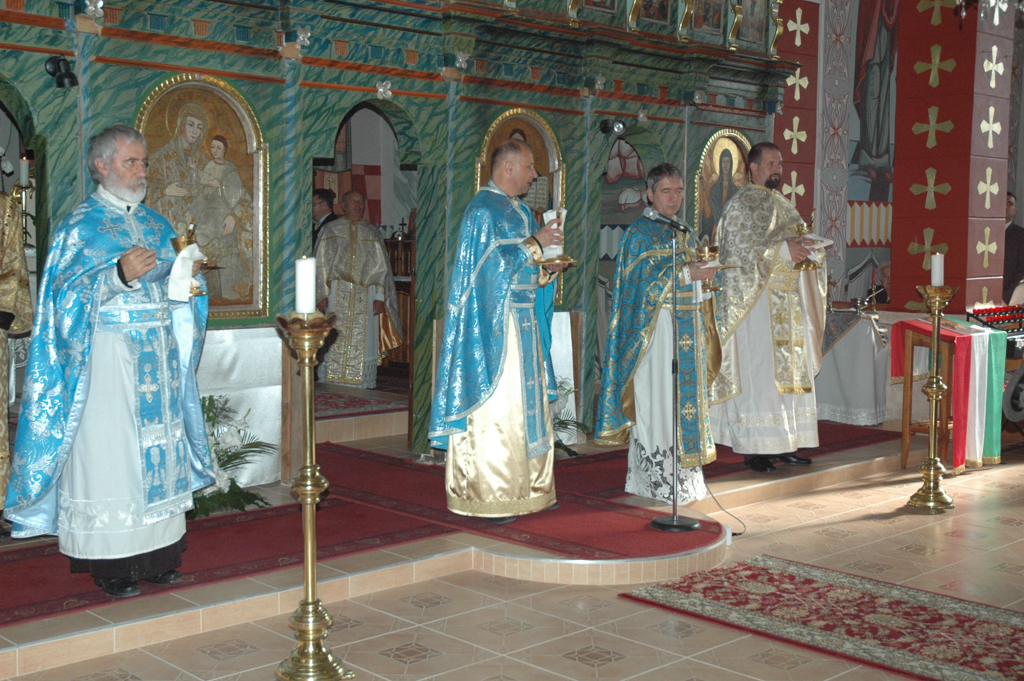 A búcsúi Szent Liturgián mintegy hat-hétszáz ember vett részt. Az ünnepség csúcsa volt az Eukarisztiában való részesülés. A Liturgia után tartottuk meg a szokásos nagy körmenetünket a templom-domb körül, majd minden jelenlévő agapén vett részt a templomkertben.