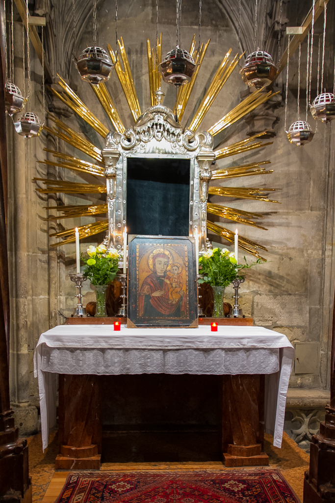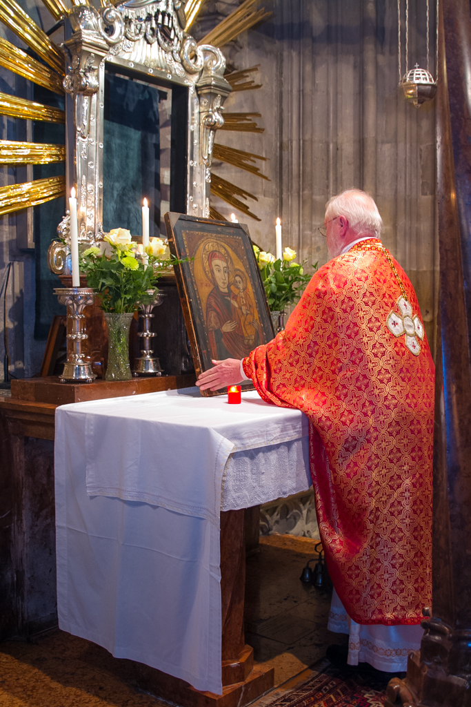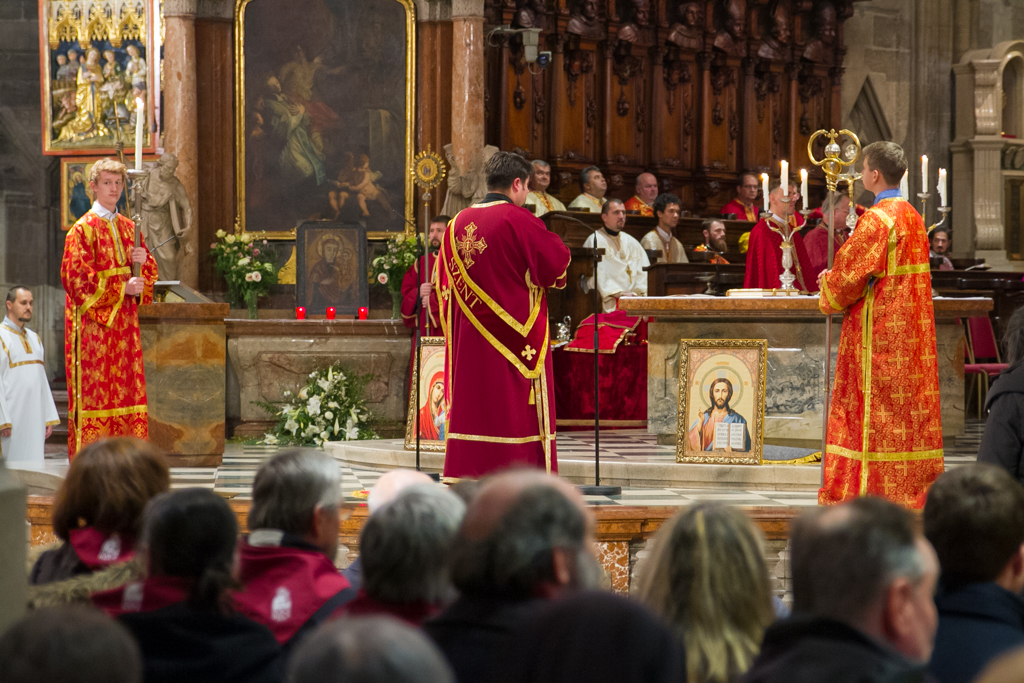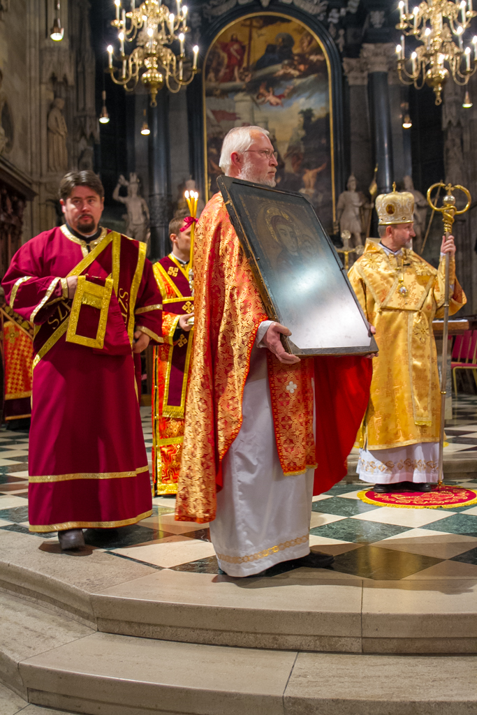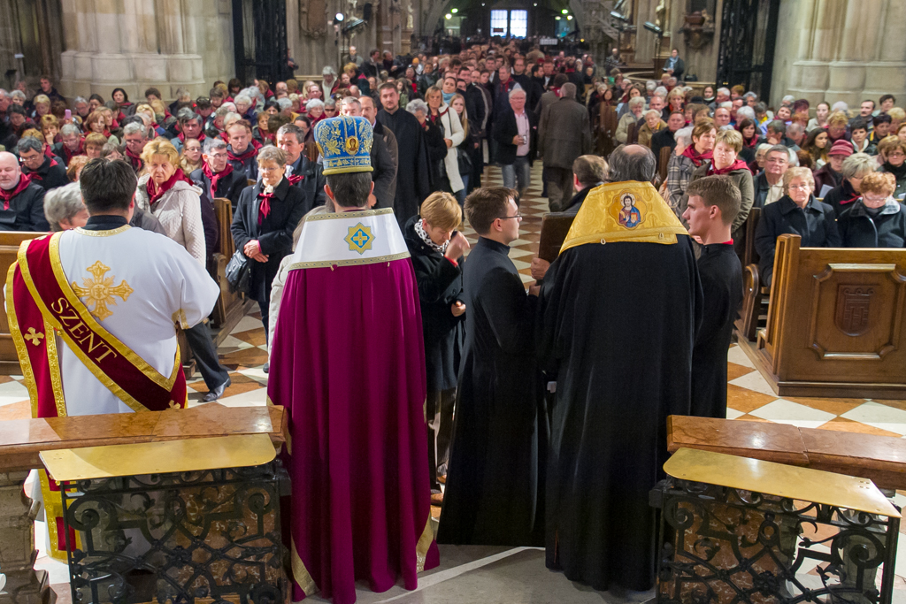 A zarándoklat közös programjaként november 9-én a bécsi Szent István dómban Orosz Atanáz, a Miskolci Apostoli Exarchátus püspök-exarchája és Kocsis Fülöp hajdúdorogi püspök vezetésével a közel félezer zarándok előbb parakliszt imádkozott közösen, majd este bekapcsolódott abba az ószláv nyelvű Szent Liturgiába, melyet a Schönborn bíboros által szervezett európai görögkatolikus konferencia zárásaként tartottak szintén a Szent István dómban. A Szent Liturgiát Igor Voznyak lembergi érsek vezette, s a görögkatolikus püspökök mellett részt vett rajta Leonardo Sandri bíboros, a Keleti Egyházak Kongregációjának prefektusa, Christoph Schönborn bíboros, bécsi érsek, valamint Peter Stephan Zubriggen érsek, Ausztria apostoli nunciusa is. A liturgiába a két magyar püspök mellett a zarándokokkal érkezett magyar atyák is bekapcsolódtak, s néhány ének magyar nyelven is elhangzott. Mind ezen a Szent Liturgián, mind az előtte imádkozott parakliszon a pócsi ikont az eredeti helyéről kihozva a főoltár mellett helyezték el, s a paraklisz során a zarándokok ikoncsókolásra járulhattak hozzá.