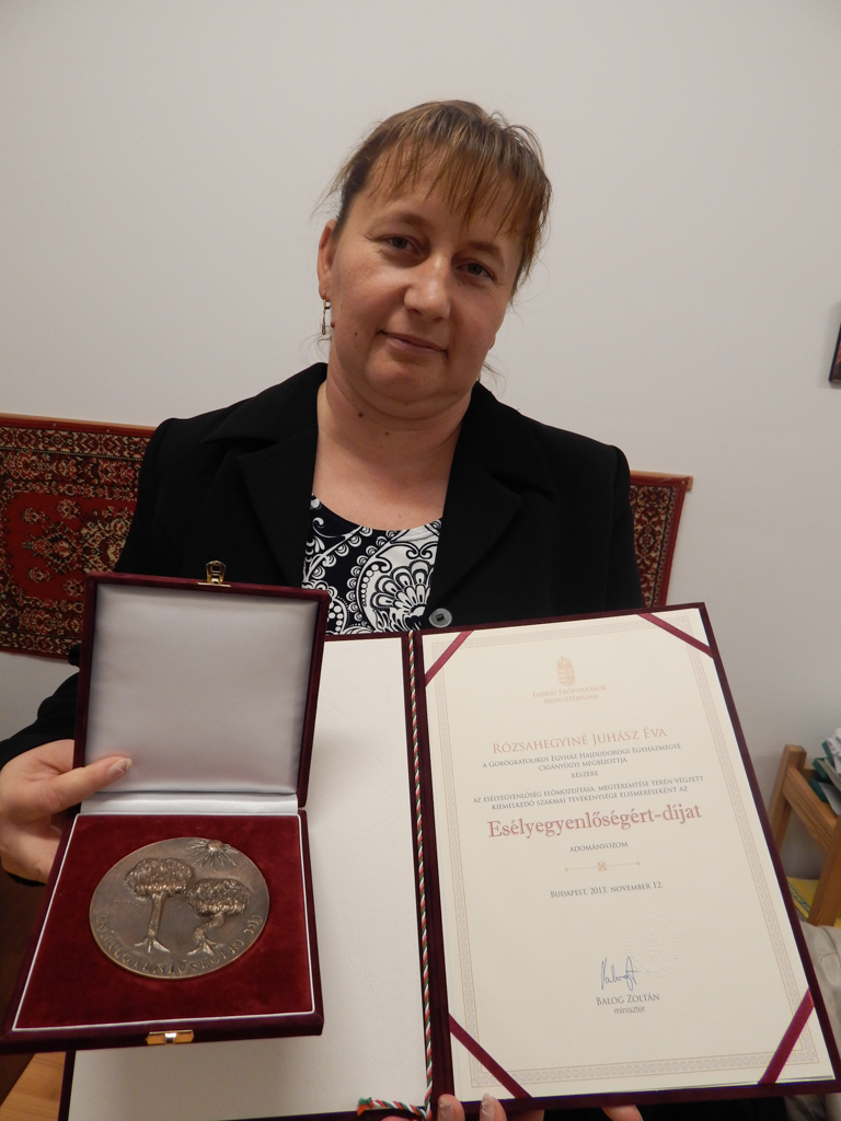 Őszintén gratulálunk Évának az Esélyegyenlőségi díjhoz, s további munkájára és életére Isten áldását kívánjuk!