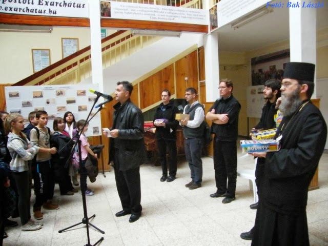 Már a gyülekező alatt is kiderült, hogy jókedvből nem lesz hiány. A Gábor atya által vezetett közös éneklésbe és játékba még a felnőttek is bekapcsolódtak. Ezután a templomban Szent Liturgián vettek részt, ahol Szikora Benedek atyától kaptak lelki útravalót. Majd az iskolában kezdetét vette a közös játék. A csapatok hittanteszten, kvízjátékban, sorversenyen és floorball-ban mérték össze tudásukat és ügyességüket. Az ebéd és eredményhirdetés után Atanáz püspök atya gondolatait hallgatták meg a gyerekek, melyek a Karácsonyra való készületükben nyújtanak segítséget. Közös imával zárult az Őszi Hittanos Találkozó, ahonnan a gyerekek így búcsúztak: "Jövőre is jövünk!"
