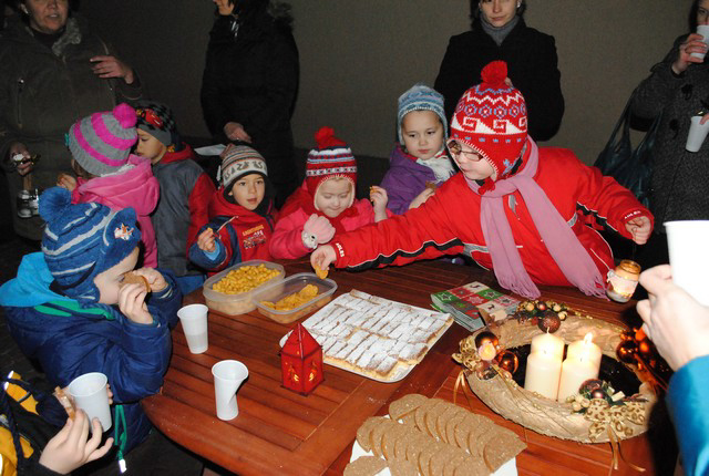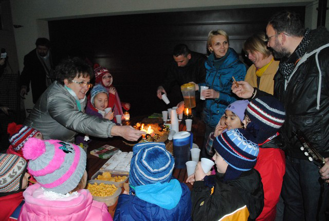 A mi óvodásaink óvónőikkel és a szüleikkel először az óvoda szomszédságában lévő görögkatolikus parókia ajtaján kopogtattak, ahol Gulybán Tibor atya, az óvoda lelki vezetője és családja vendégelte meg a szépen éneklő és verseket mondó kántálókat. Ezután a kis csapat elindult az óvodások családjaihoz is a kis Jézus születését ünnepelni. Nagy élmény volt ez az esemény a gyerekeknek és a felnőtteknek egyaránt. Reméljük, hogy ők tovább adják majd ezt a szép karácsonyi szokást.