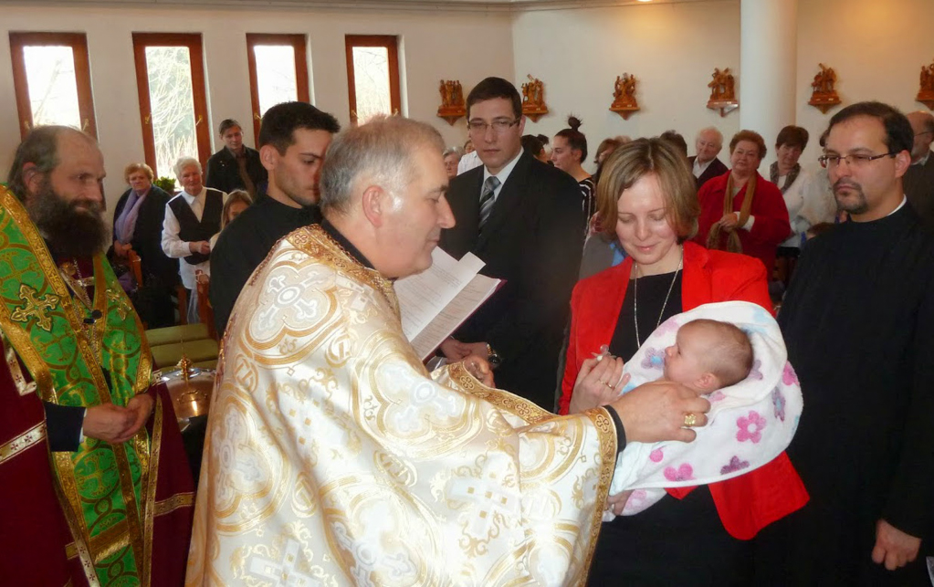 Fülöp püspök atya hosszú útról, egyenesen Rómából érkezett Pomázra, a Mosolygó család negyedik gyermekének, Szófiának a keresztelésére. Nagy izgalmak előzték meg a jelentős eseményt: vajon milyen lesz az alámerítés? – hiszen egyikünk sem látott még ilyet... Feldíszítettük a kápolnát a szép szertartásra, nagy gonddal melegítettük a keresztelőmedencébe szükséges vizet.