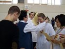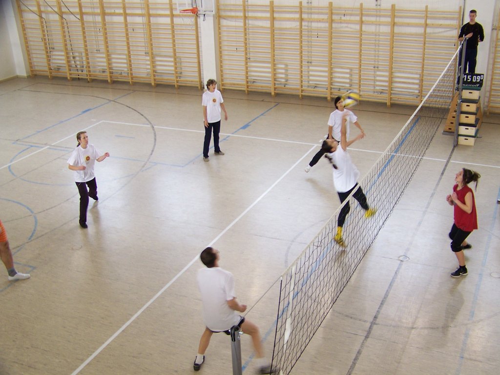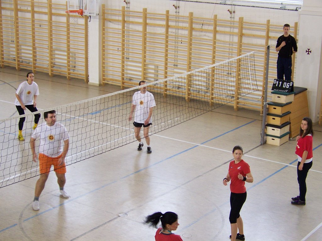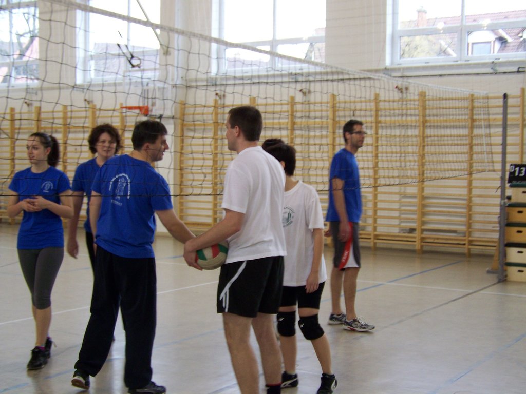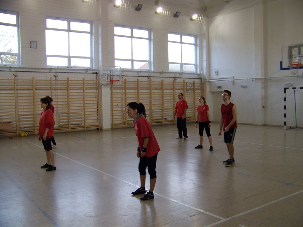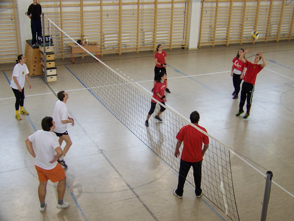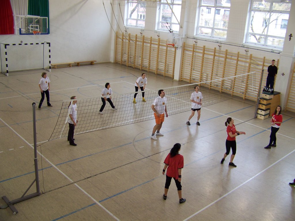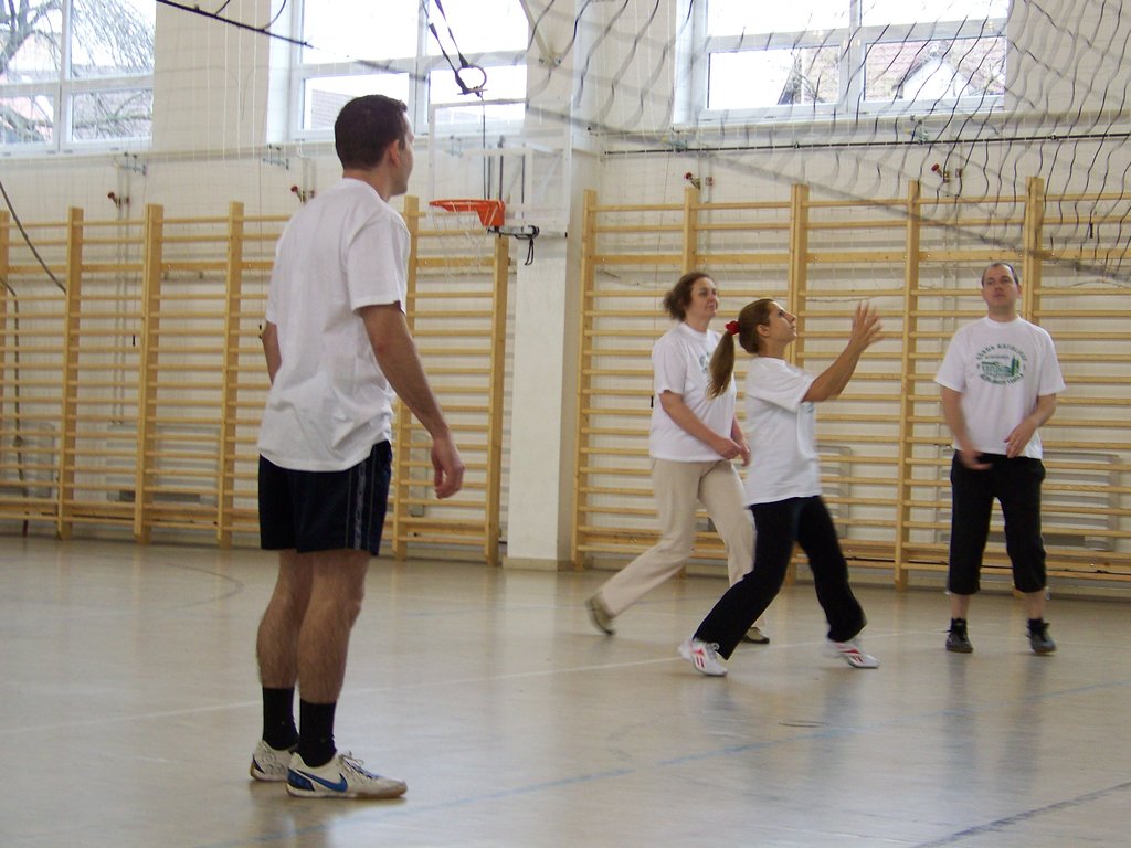 Azonban e szombat délelőtti napon a tornaterem „dekorációját” csupán egy kifeszített röplabdaháló jelentette, hisz’ csak ennyi kell a röplabda nevezetű játékhoz… no meg persze lelkes pedagógus-csapatok, abból pedig nem volt hiány. És láss csodát, a pedagógusok az élet más területein is - így a sportban, a röplabdában is - tudnak kiemelkedőt nyújtani. A résztvevő négy egyházmegyei iskola női és férfi pedagógusaiból álló vegyes csapatai körmérkőzéseket játszottak. A hangos és kitartó szurkolásnak pedig óriási „varázsereje” volt; megmutatta, hogy az esetleges kezdeti görcsösség hamar elmúlik, s akár a végső győzelemig is képes elrepíteni egy csapatot.