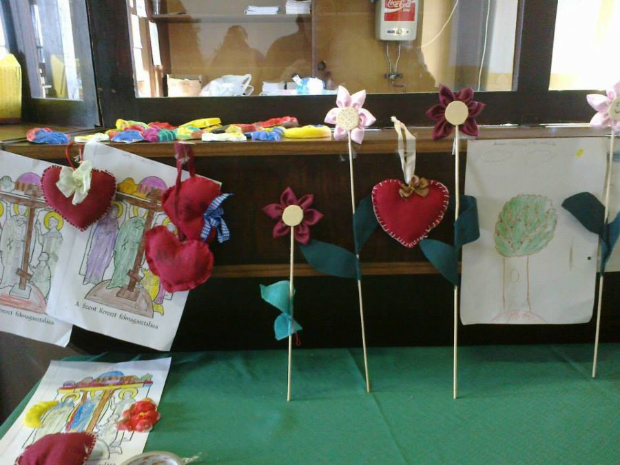 A világban a rossz, a kísértés jelen van, de imával küzdhetünk ellene! A nagyobbakkal a saját fájukat rajzoltattam meg – gyökérrel, ágakkal, rügyekkel, virágokkal, sérülésekkel, görcsökkel, gyümölcsökkel –, és utána átbeszélgettük a fák jellegzetességeit, érett vagy éretlenségeit, férgességét, rosszaságát. Mi ad tartást az életemnek? Ki tart engem? Milyenek a gyökereim? Hogyan táplálom testemet és lelkemet? A legkisebb gyermekek bibliai színezőkkel, gipszfigurák festésével töltötték az időt. Kézműves foglalkozás keretében mindenki készített „szívecskés" tűpárnát és textil virágokat.