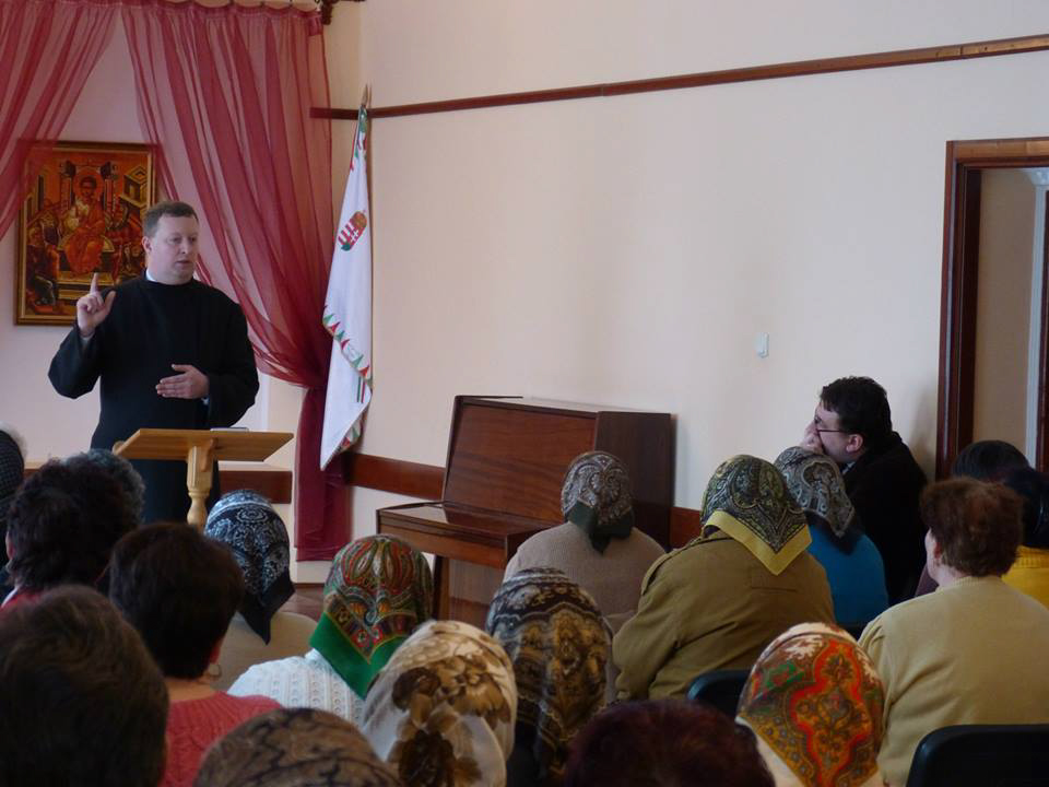 A beregszászi esperesi kerületben 2014. március 1-jén első alkalommal szervezték meg az özvegyek és egyedülállók lelki napját. Míg a fiatalok az Egyház jövője, addig nagyszülők, özvegyek az Egyház alapjai, akik megtanítják gyermekeiket, unokáikat imádkozni és életpéldájukkal vezetik Isten felé. A lelki napot Kapcsai Viktor pátyodi áldozópap vezette. Elmélkedéseiben a magányra és annak megélésére irányította a gondolatait. Viktor atya két kísértést emelt ki, amely az özvegységben megjelenhet: a teljes befelé fordulás és a nyitottság. A böjtre készülve elmondta, hogy nem elég csak a húsos ételektől tartózkodni, hanem azt imádsággal és a jócselekedetekkel kell párosítani. „Bár a böjt alatt nem eszünk húst, de marcangoljuk, rágjuk a másik embert szavainkkal, gondolatainkkal. Megbántjuk, s szinte lerágjuk róla a húst. Az ilyen ember nem tud igazán böjtölni.” – hangsúlyozta az atya. A finom ebéd után lehetőség volt a szentgyónás elvégzésére, (a nagyböjtre készülve a jelenlévők 70%-a meg is tette) majd Szent Liturgiában adtunk hálát Istennek ezért a szép és lelkileg tartalmas napért. A lelki napon közel 70-en vettek részt. A helyet a Karácsfalvai Sztojka Sándor Görög Katolikus Líceum biztosította. Köszönet érte! Reméljük lelkileg feltöltődve kezdik a nagyböjtöt!