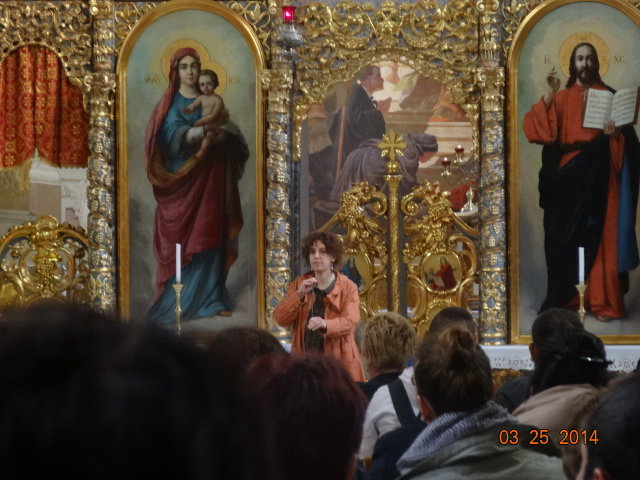 A Szent Liturgia után a Zarándokház munkatársa bemutatta a templomot, ismertette Kegykép történetét, majd a fatemplomot tekintettük meg.