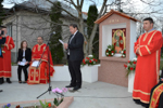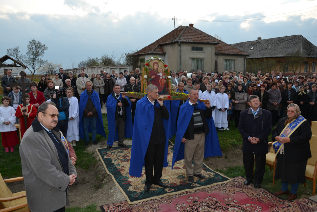A zsúfolásig megtelt templomból a hívek körmenetet keretében átvonultak az úti ikonhoz. Ennek megszentelése után, Erdei Dolóczki István, romániai parlamenti képviselő és Lengyel István, Lázári község polgármestere elhelyezték az időkapszulát, melynek tartalma: jelen korabeli napilapok és az egyedüli romániai magyar görögkatolikus újság aktuális száma, pénzérmék, egy tizenegyedikes diák személyes levele a jövőnek s az esemény emlékirata. Az okiratot id. Pallai Béla szatmárnémeti címzetes esperes olvasta fel. Majd az emlékezés koszorúit helyezték el az emlékműnél: Pataki Csaba szenátor és Draveczki Károly megyei tanácsos, valamint Dr. Vejkey Imre magyarországi országgyűlési képviselő és Kiss András a Magyarországi Fiatalokért Alapítvány operatív igazgatója. A magyarországi képviselő köszöntő beszédet is intézett az ünnep kapcsán, és örömét fejezte ki, hogy bár egy eldugott kis falucskába érkezett mégis tevékeny, élő hittel, összetartozással és odaadással méltóan büszkélkedő közösséget talált. Minden jelenlévő megtapasztalhatta, hogy amióta a felfedezett peleskei Istenszülő ikon eredeti állapotában csillog, érdeklődők, imádkozni vágyók, lelki nyugalmat keresők számos serege keresi fel a települést és annak templomát. Több visszajelzés érkezik, hogy a peleskei ikon előtt mondott imák meghallgatásra találtak. Bár az ikont a XIX. század végén és a századfordulón kegyképként tisztelték, amíg hivatalosan nem bizonyított, nem lehet csodatévőnek nyilvánítani. A tanúk által igazolt gyógyulások viszont feljegyzésre kerülnek.